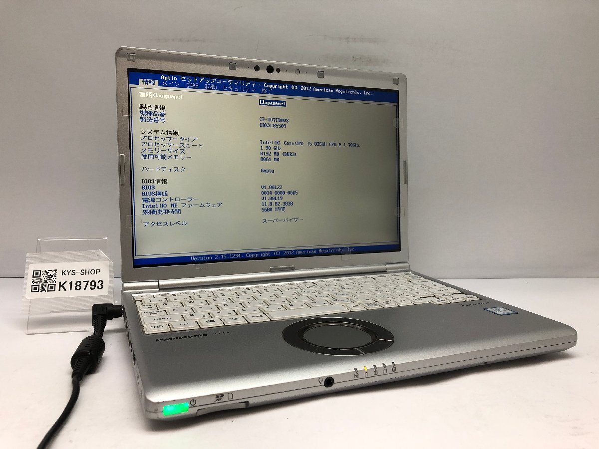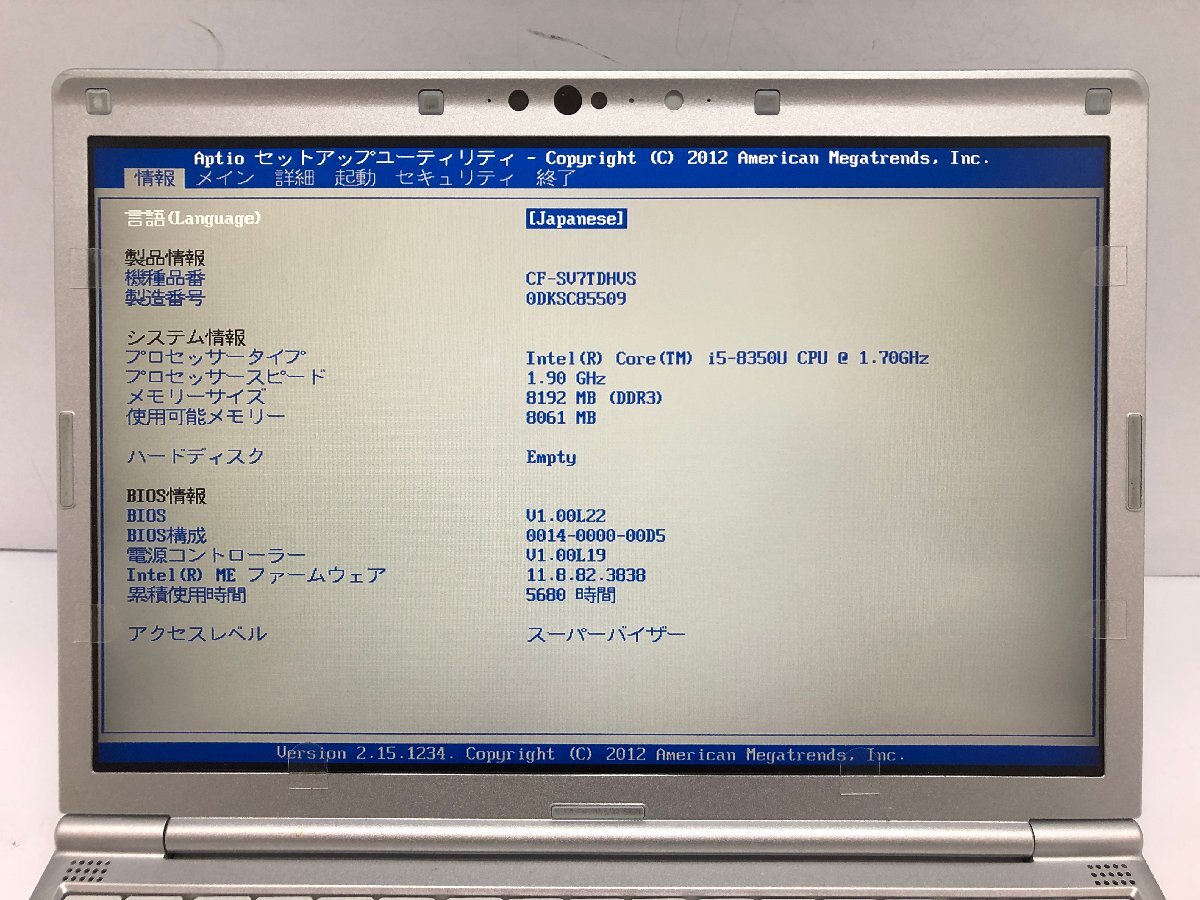 ジャンク/ Panasonic CF-SV7TDHVS Intel Core i5-8350U メモリ8.19GB ストレージ無し 【K18793】