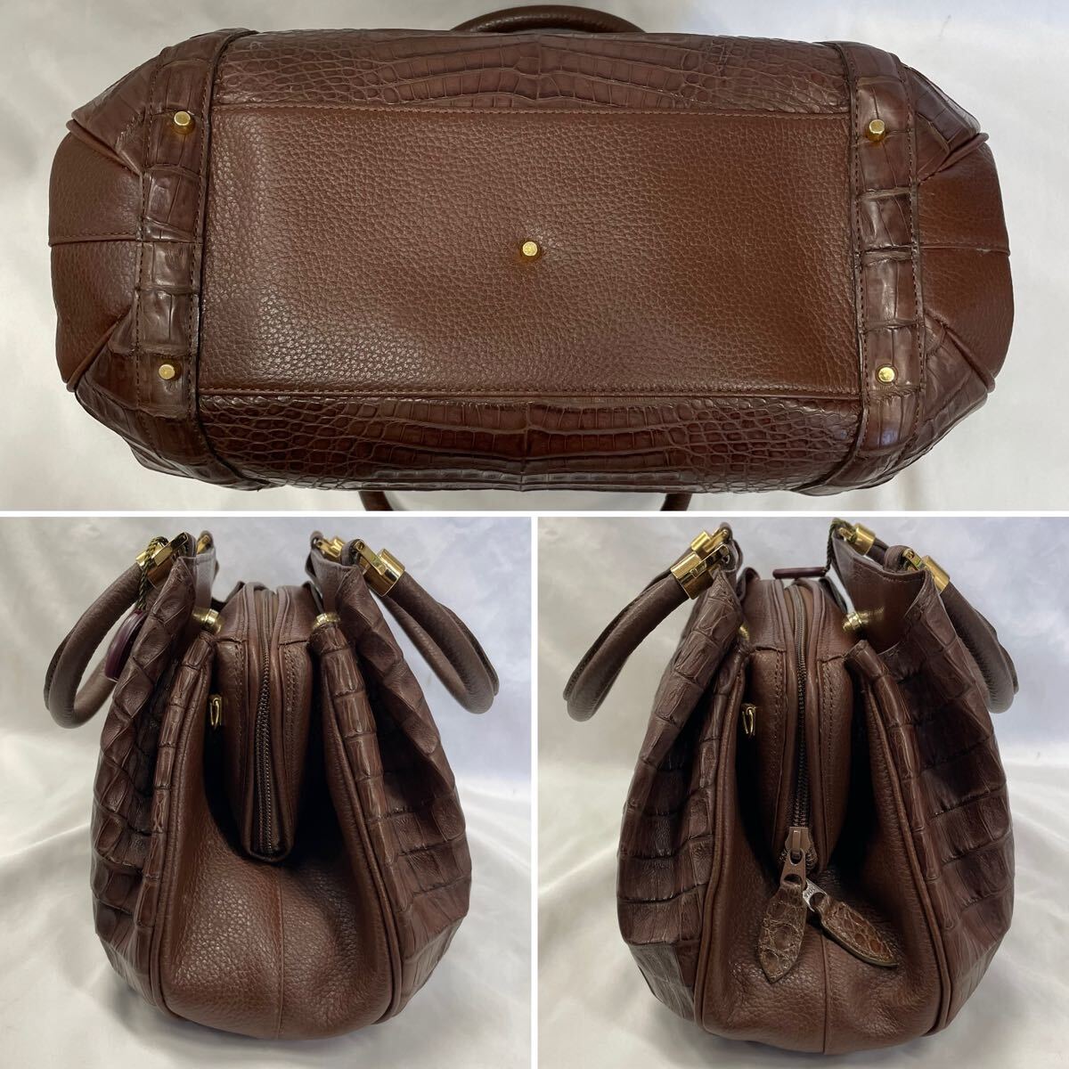 ANKH JET JRA ハンドバッグ 鞄 クロコダイル? ワニ革 ブラウン系 レザー エキゾチックレザー