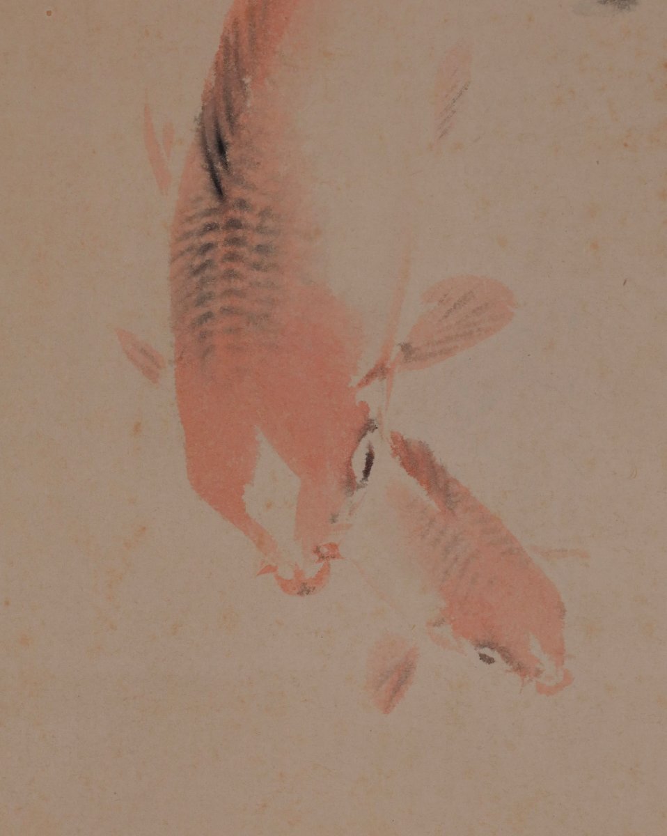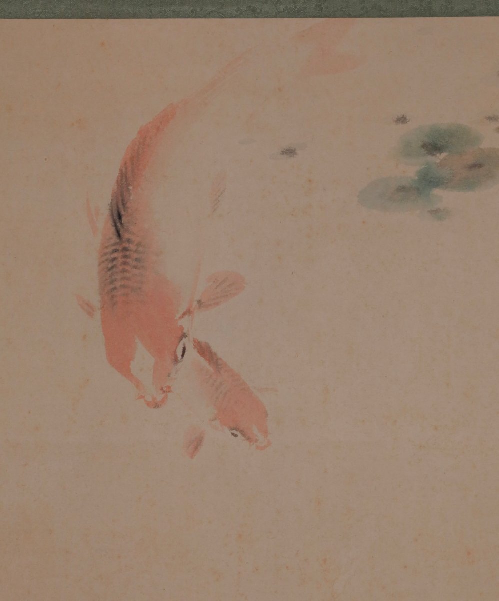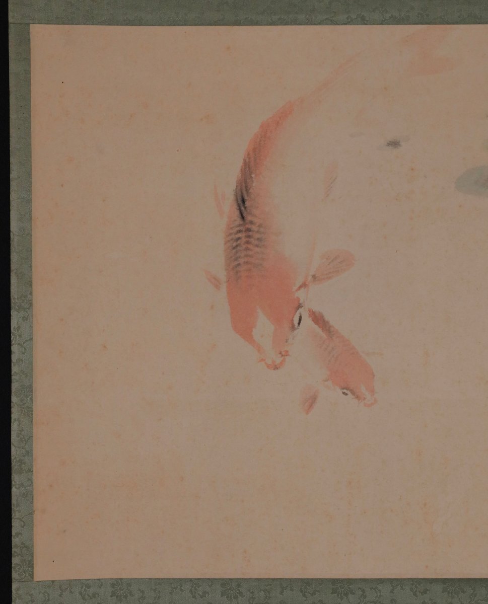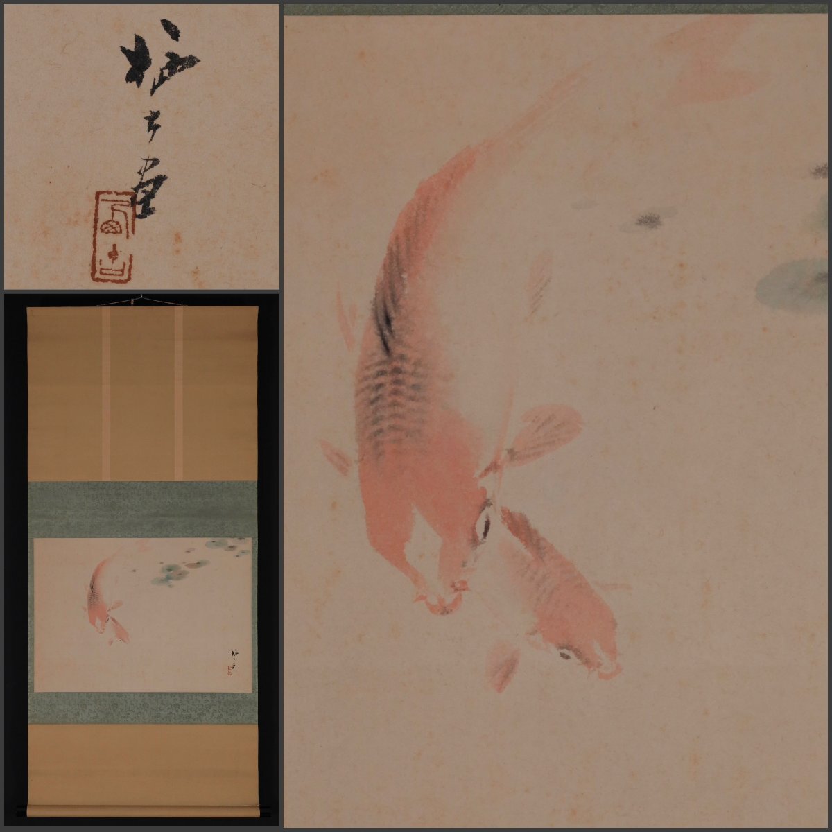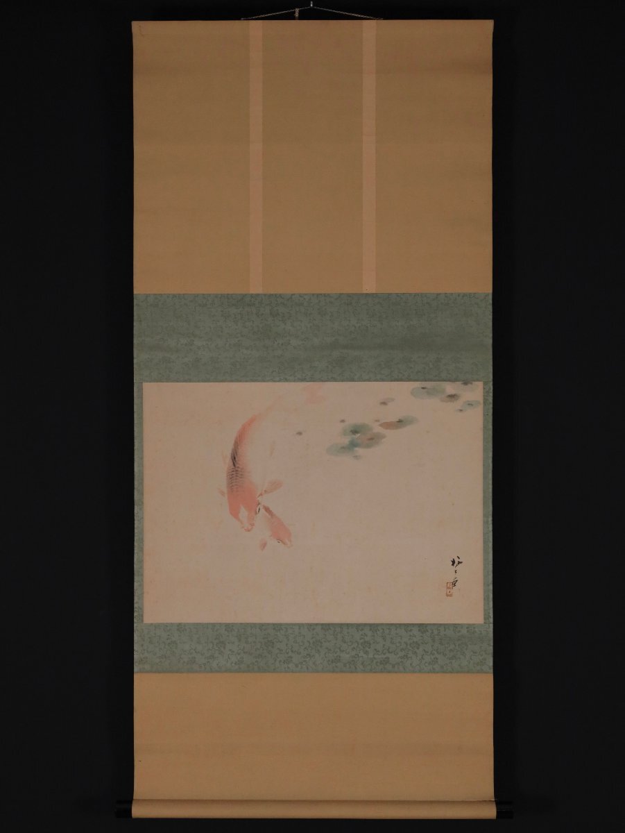 【模写】吉】12676 青木栖古 鯉図 佐々木介堂・服部石仙師事 愛知県の人 茶掛け 茶道具 中国画 掛軸 掛け軸 骨董品