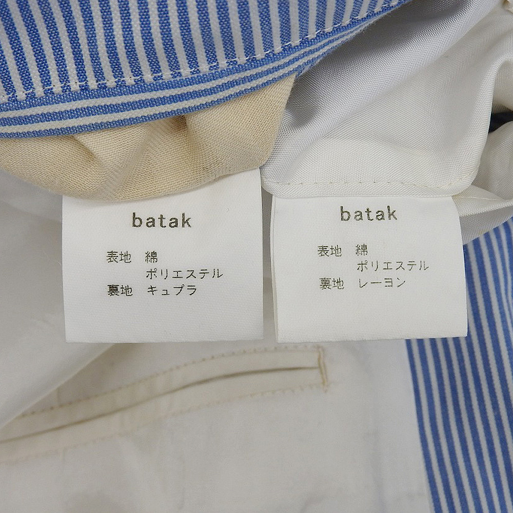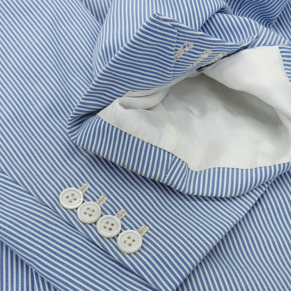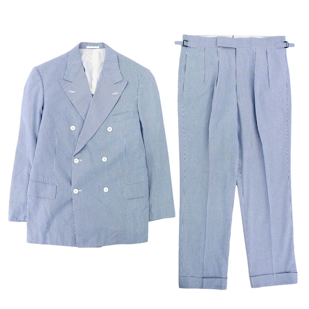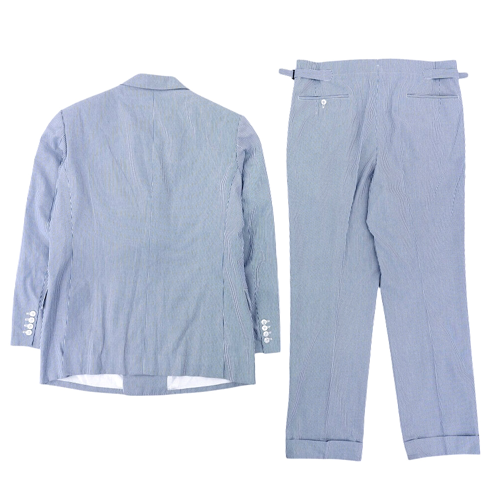 良品 batak バタク シェルボタン ストライプ柄 ダブルブレストテーラードジャケット スラックスパンツ スーツ ブルー×ホワイト