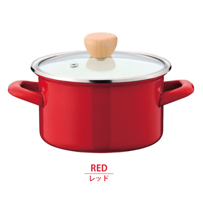 | ホーロー鍋 蓋 新生活 一人暮らし 料理 調理器具 初心者 両手鍋 保存 保管 深型 ホワイト レッド 白色 赤色 |