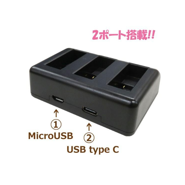 AHDBT-901C GoPro ゴープロ 互換トリプルUSB充電器 バッテリー3個同時充電可能 純正バッテリー充電可能 Hero9 Hero10 Black Hero12 Black