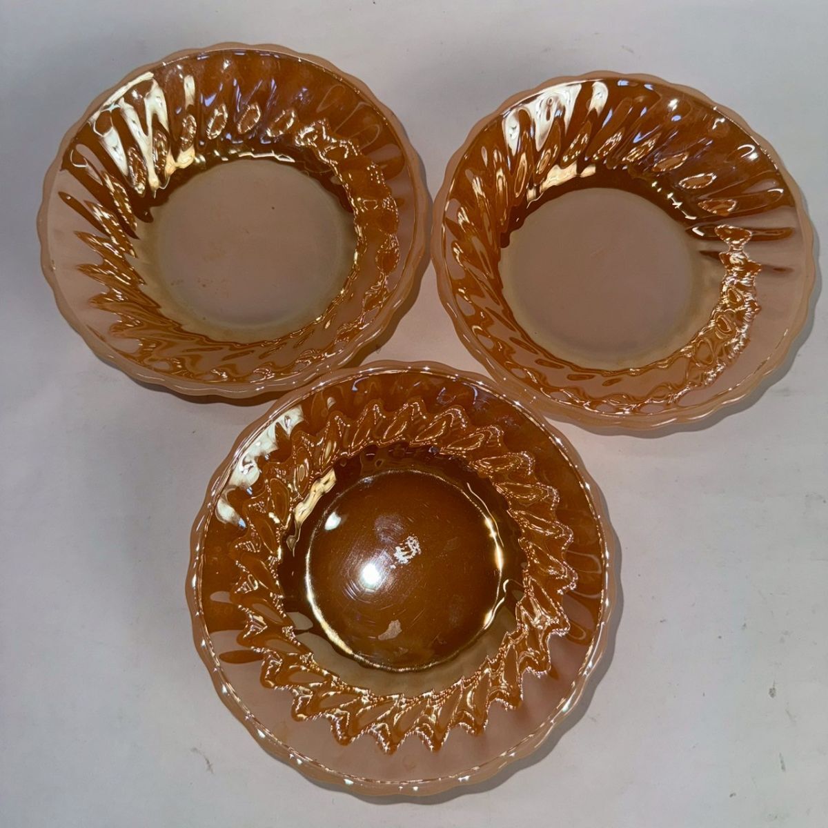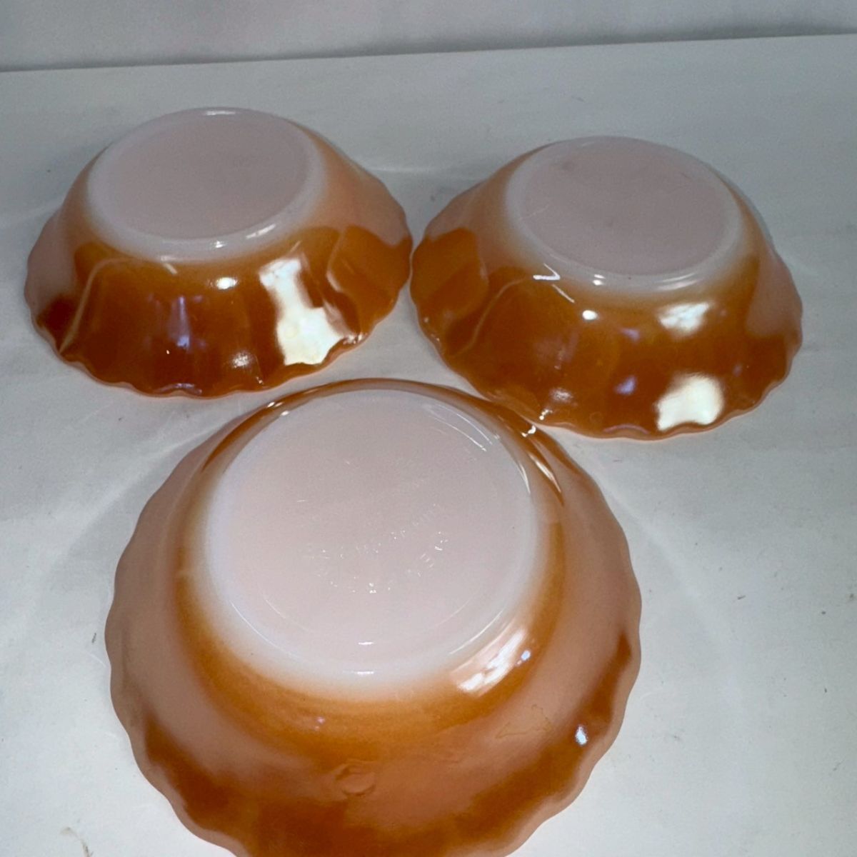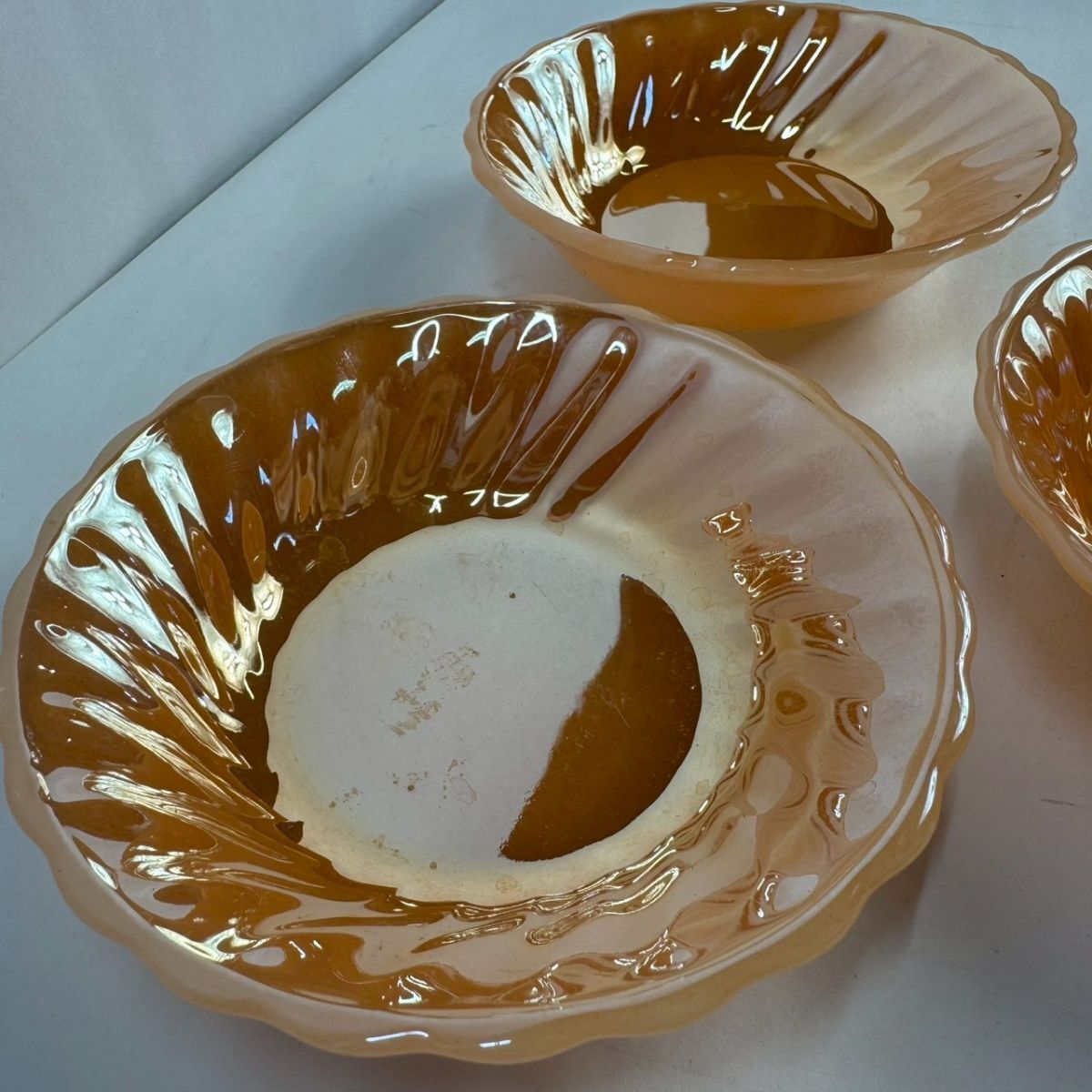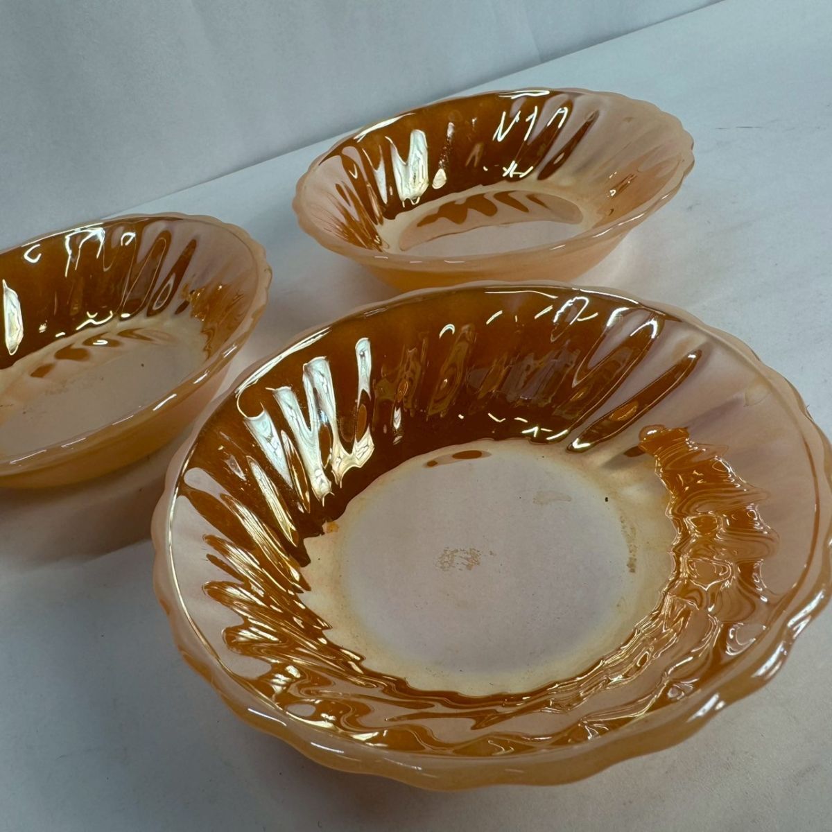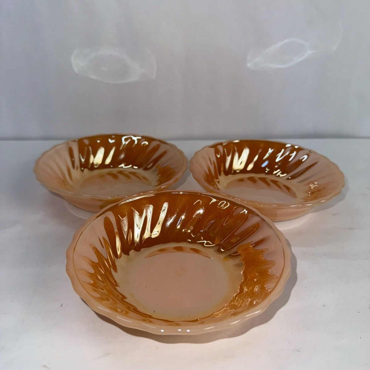 小皿 3個セット 3枚 ANCHOR HOCKING アンカーホッキング オレンジ パール光沢 オーロラ アメリカ製 長期保管品 Mp R7730