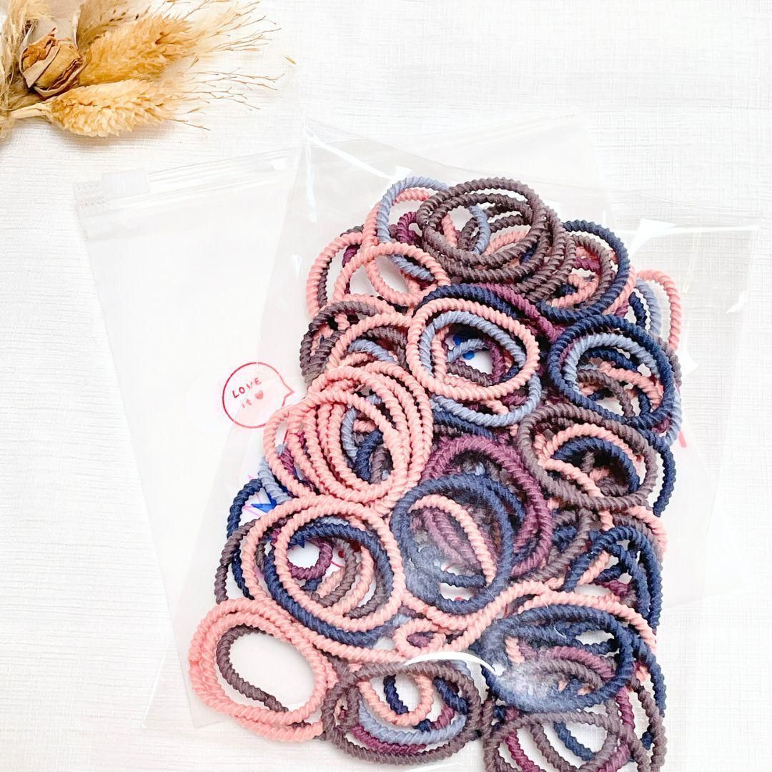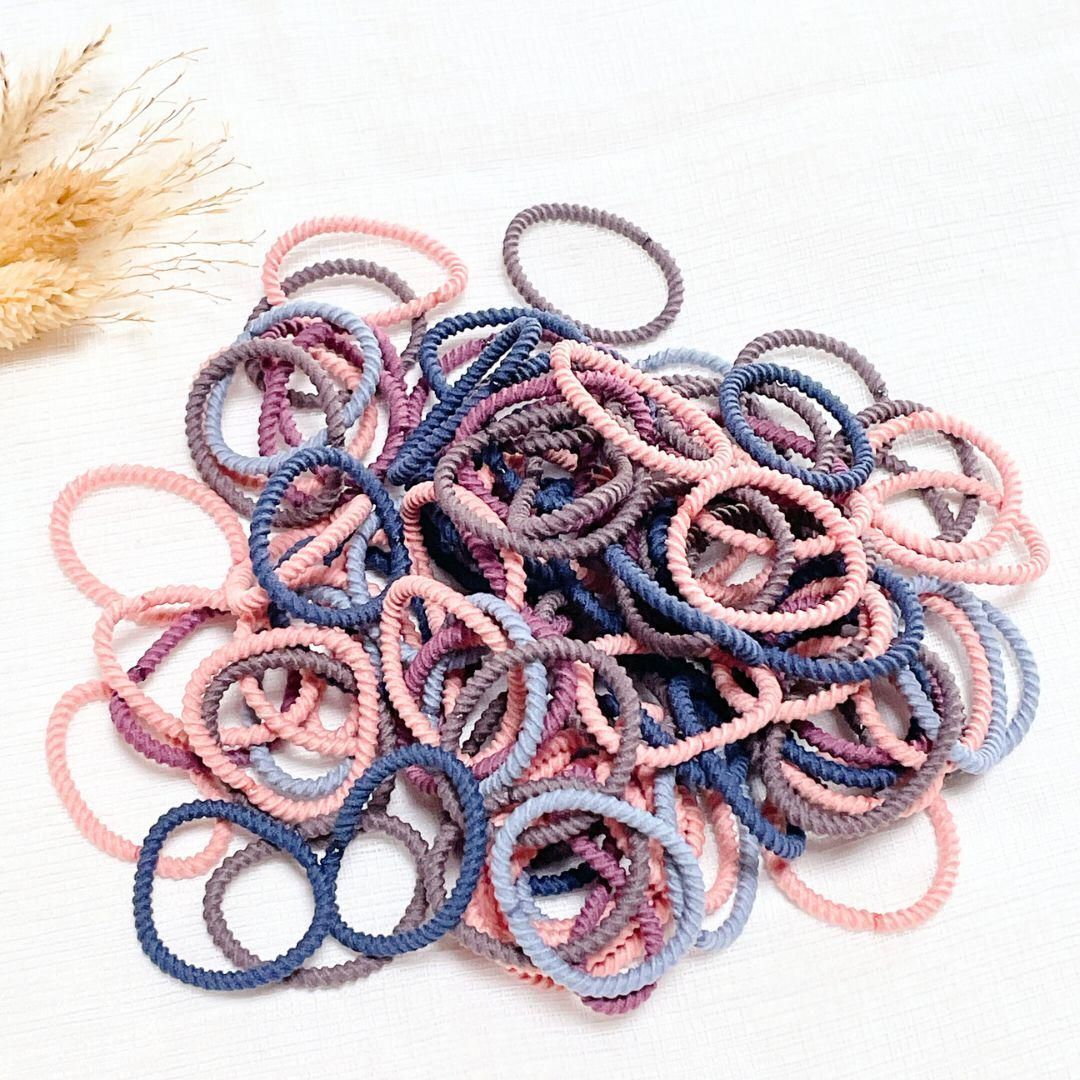 直径約3cmで扱いやすいサイズ感の、くすみカラーリングゴムまとめ売りセットです。