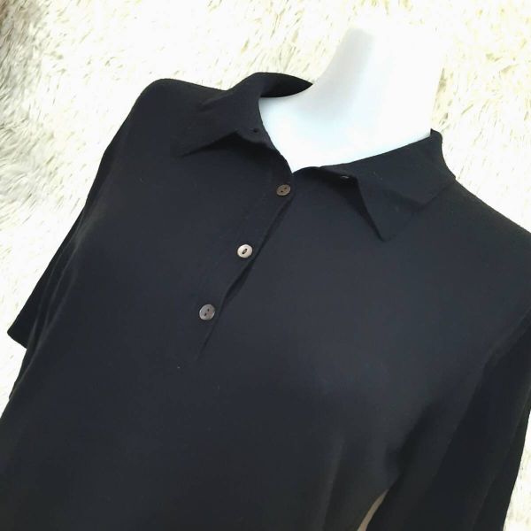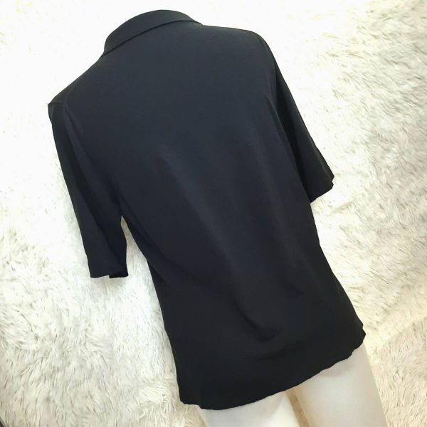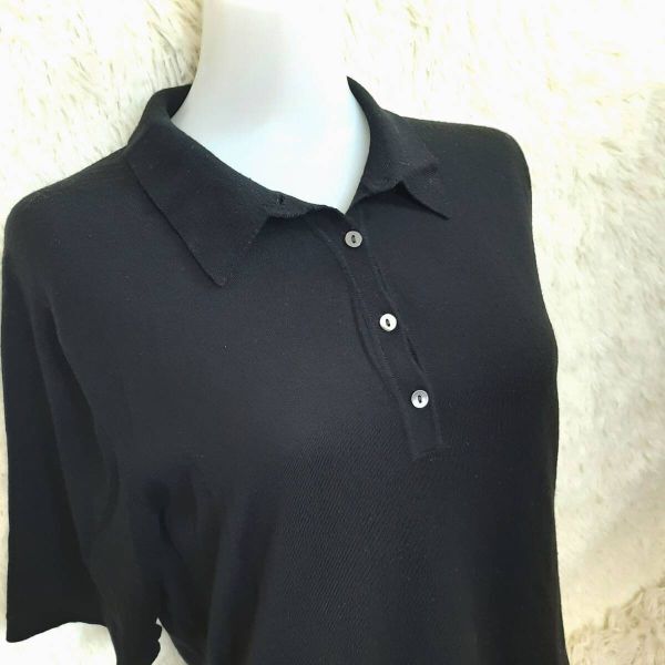 Leilian レリアン ウール100 半袖 襟付き ニット セーター 黒 ブラック イタリー製 イタリア製 サイズ9 A