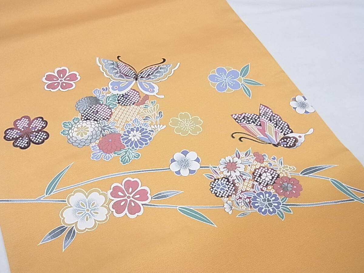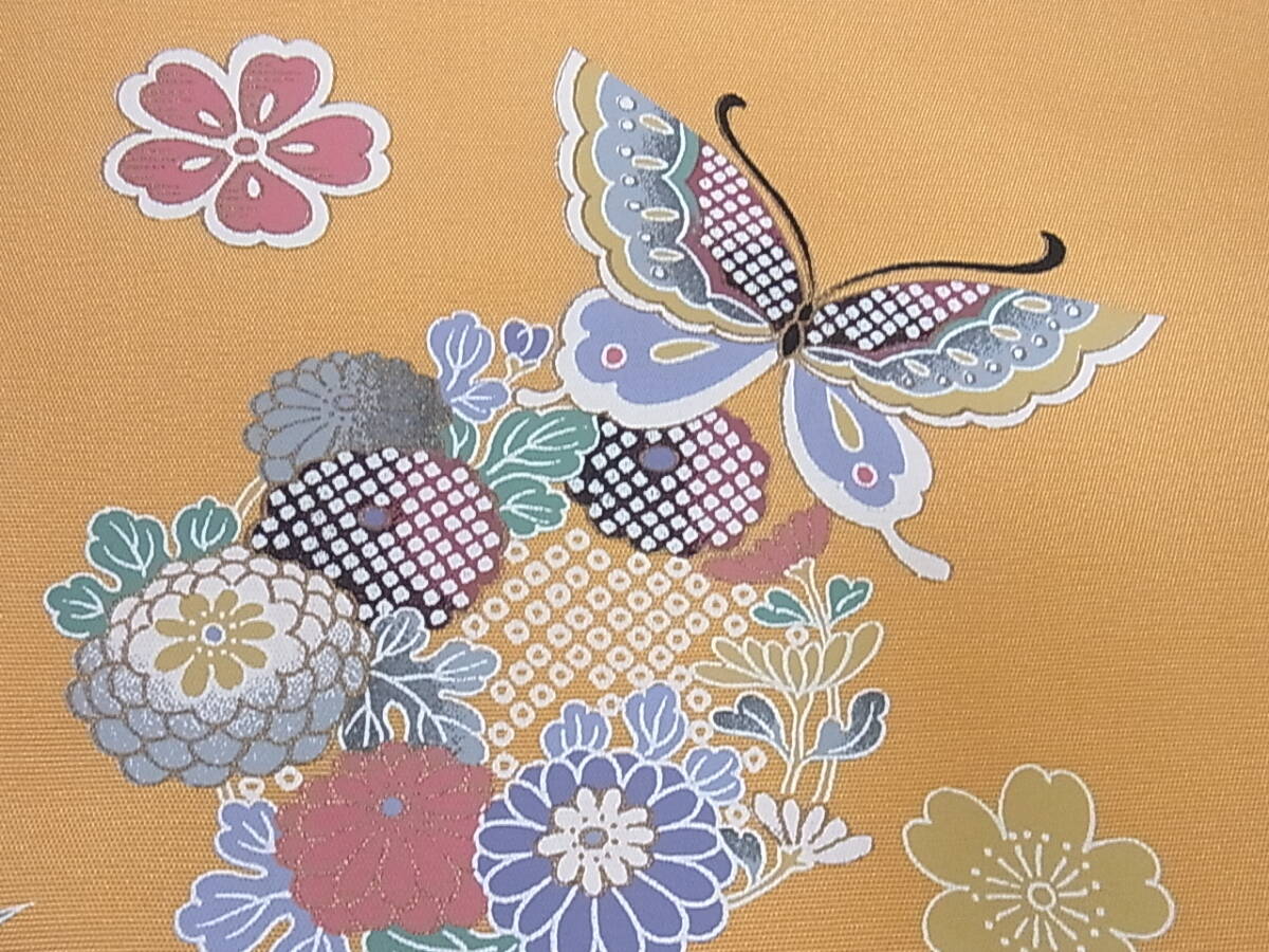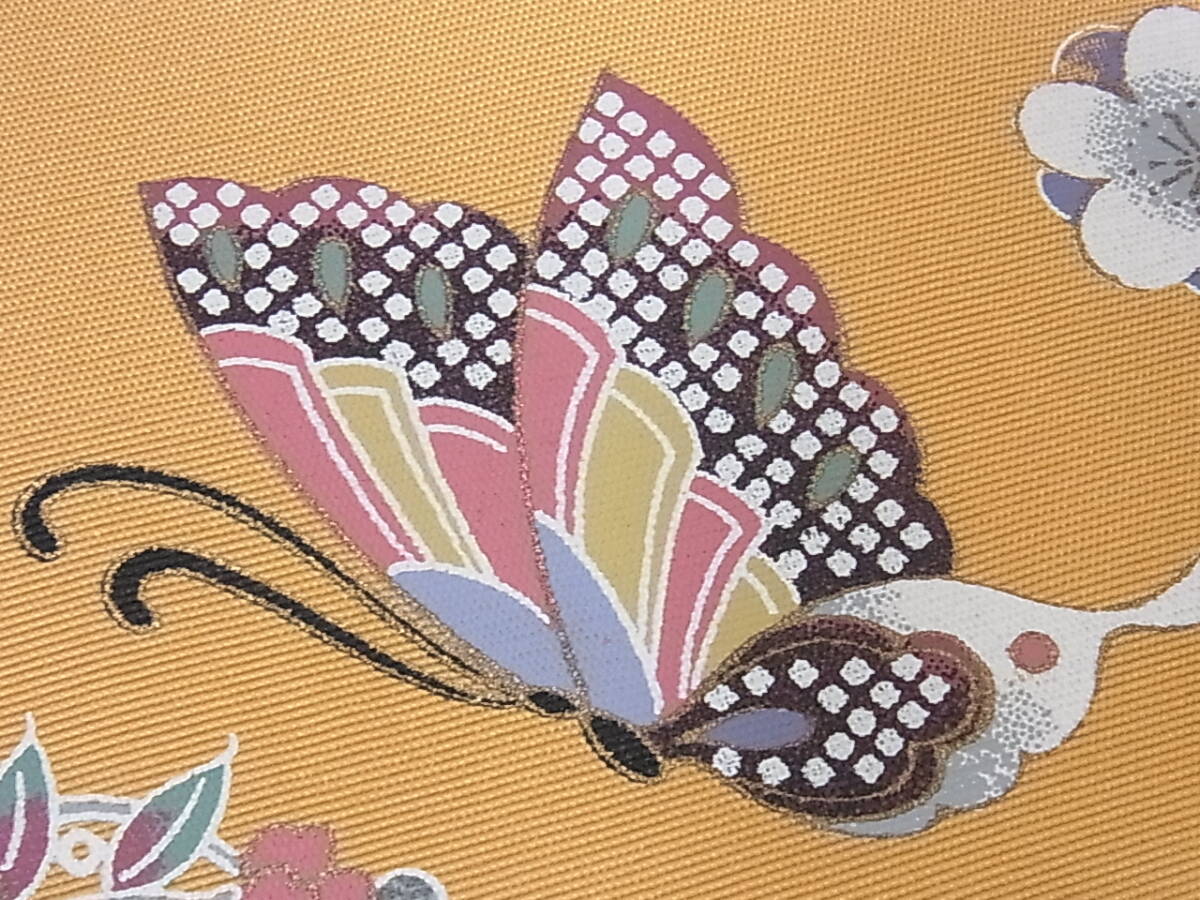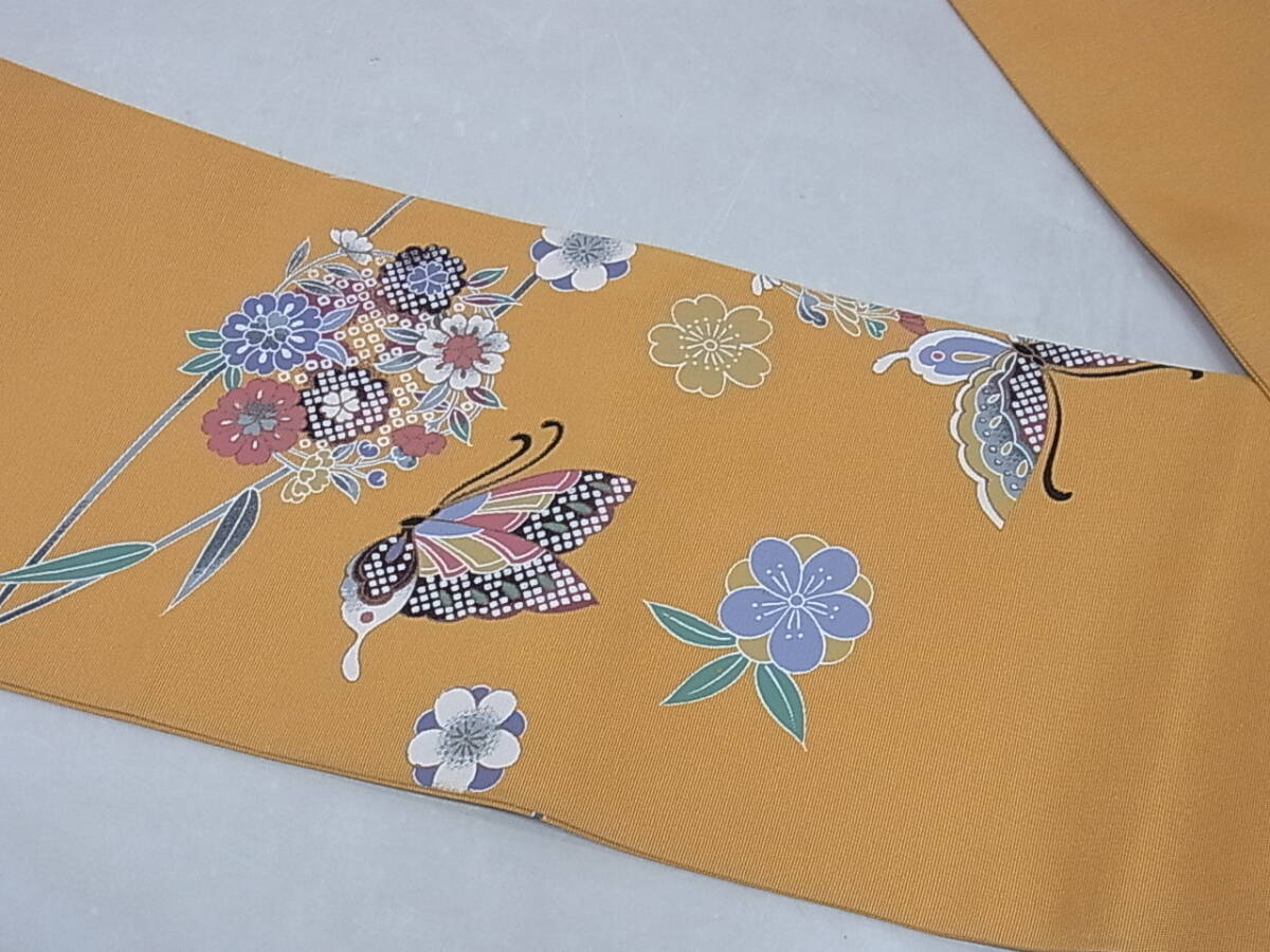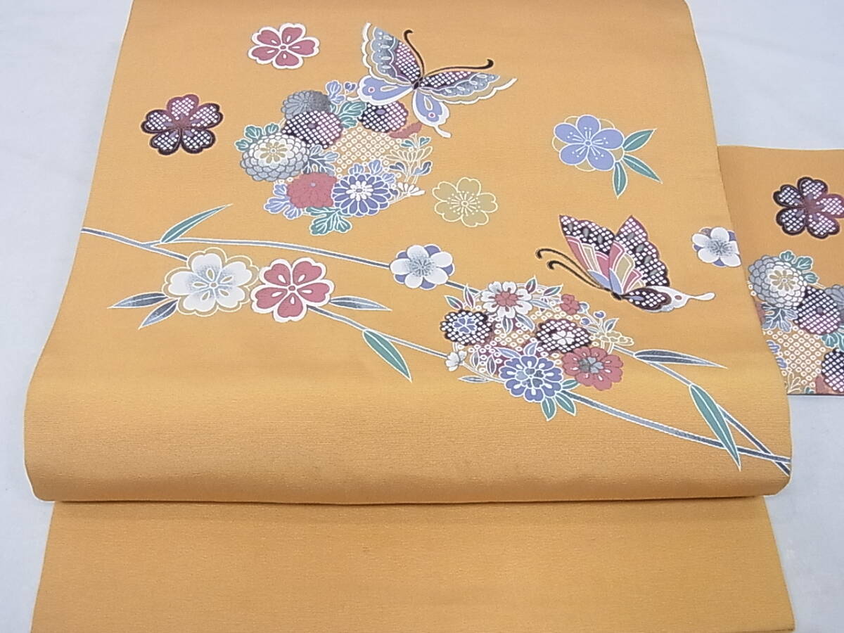 着物おきな2★九寸名古屋帯 舞蝶花文 ポリエステル★r3747