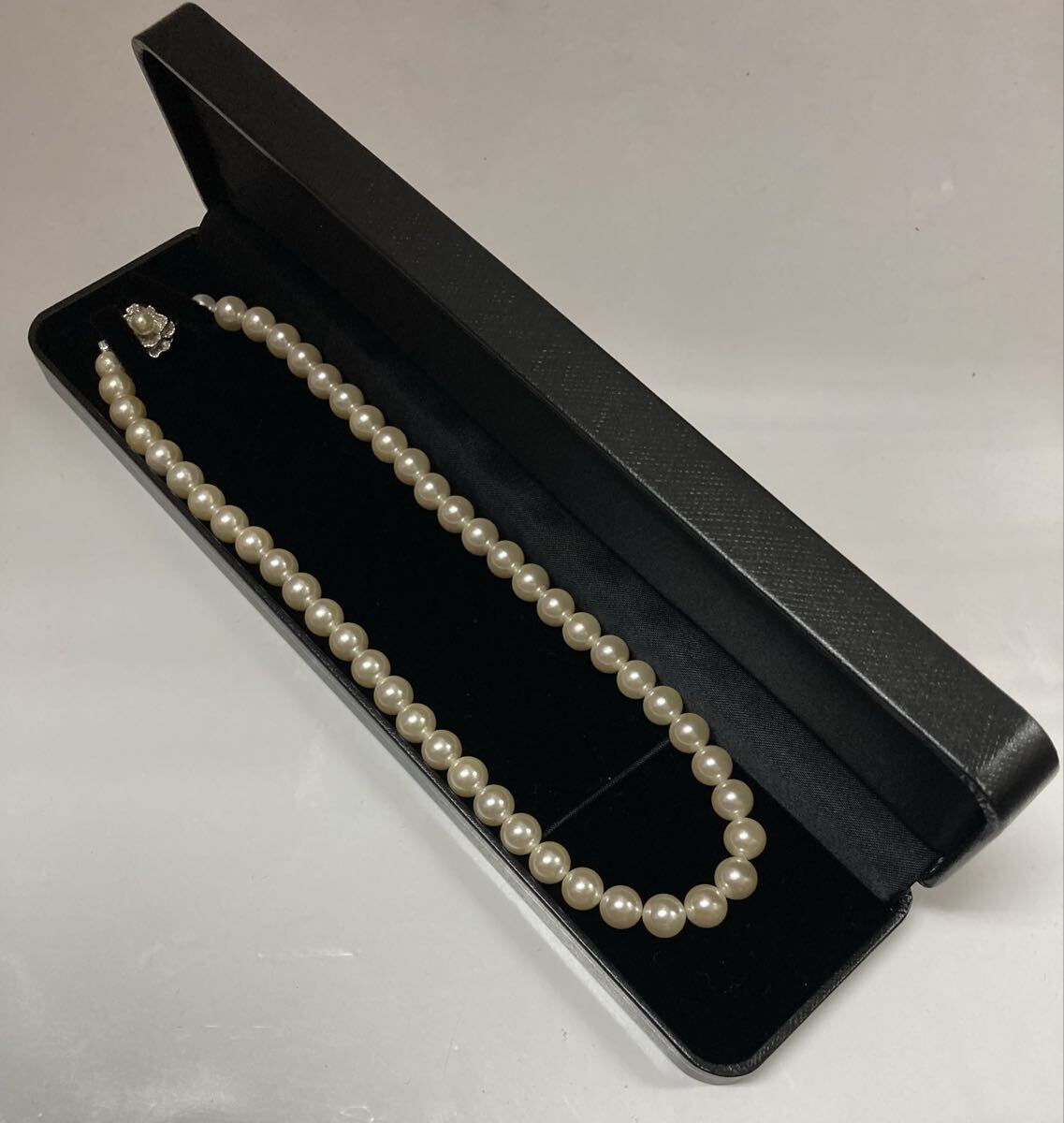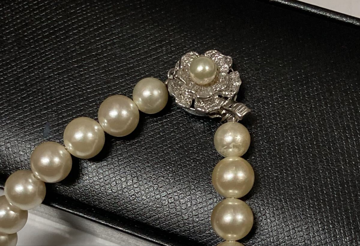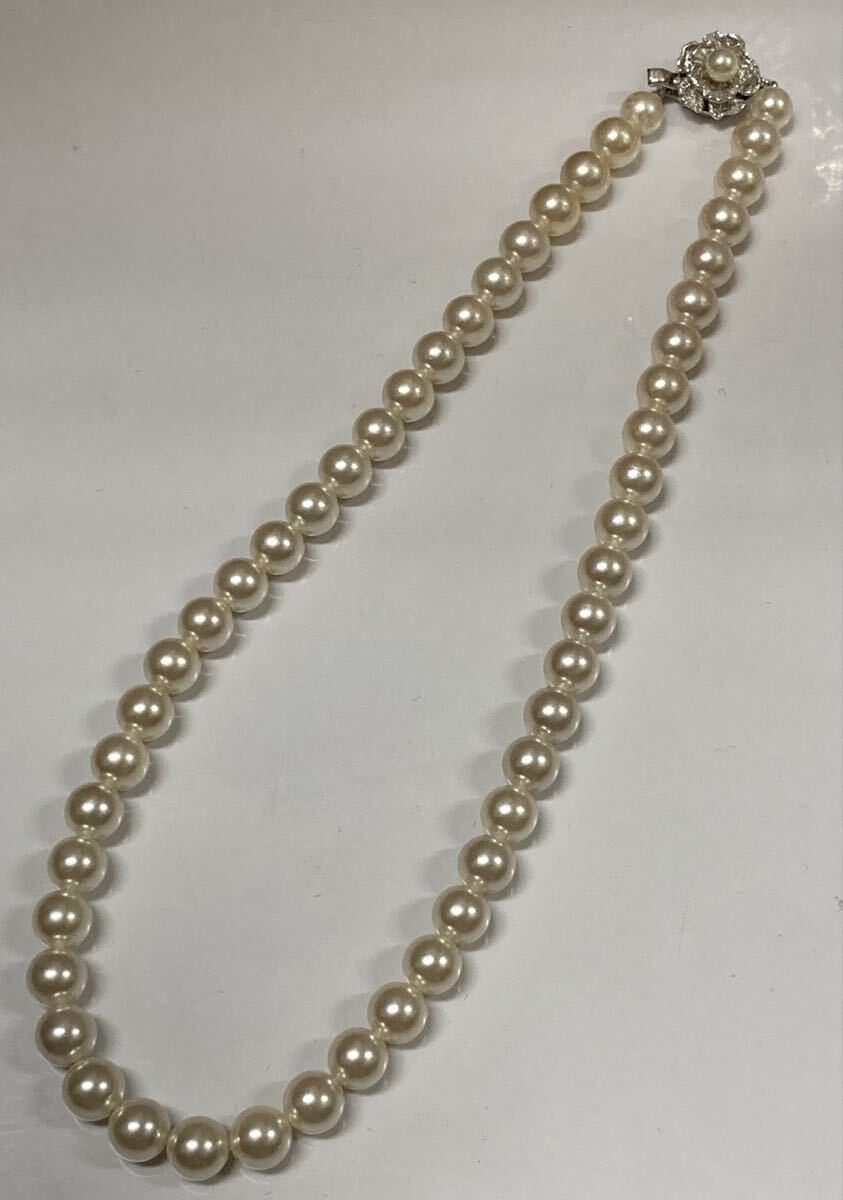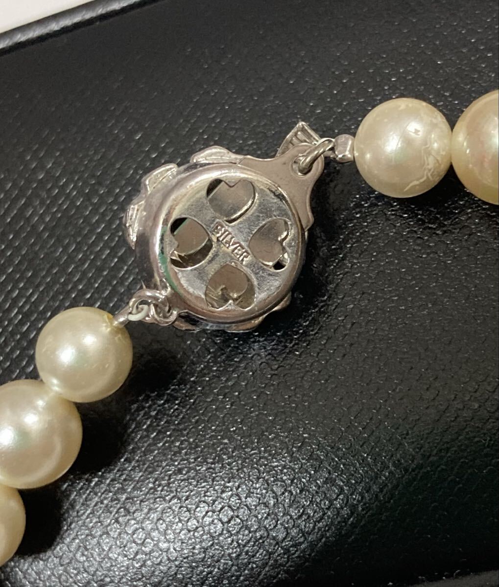 アコヤ真珠 パール ネックレス 美品 ♪ SILVER 刻印 全長:約40cm 珠:約9.0mm ケース付 本真珠 百貨店 冠婚葬祭 フォーマル あこや 真珠