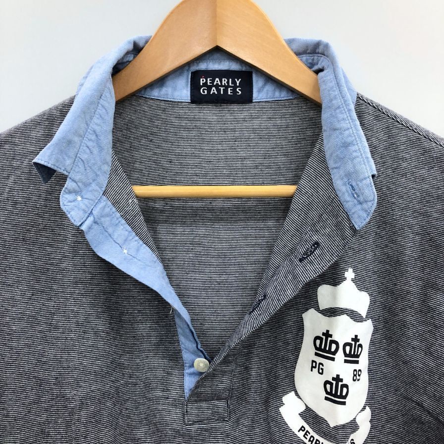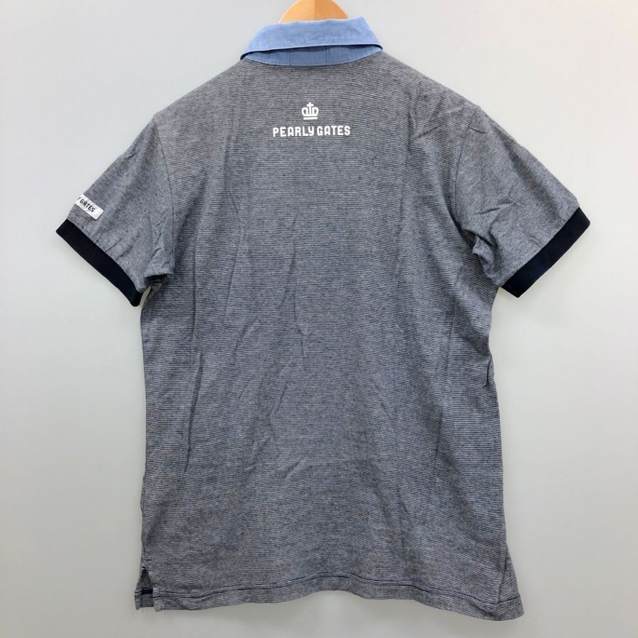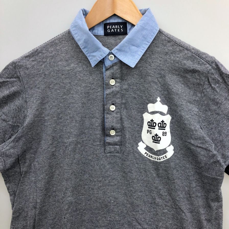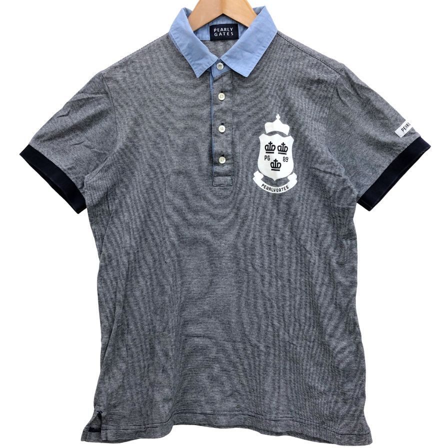 中古◆ポロシャツ パーリーゲイツ ポロシャツ 半袖 切替 ボーダー プリント デザイン グレー メンズ サイズ4 PEARLY GATES 【AFB34】