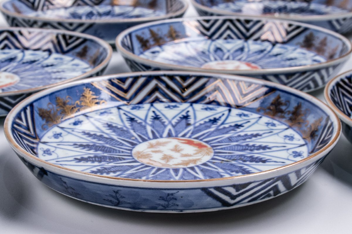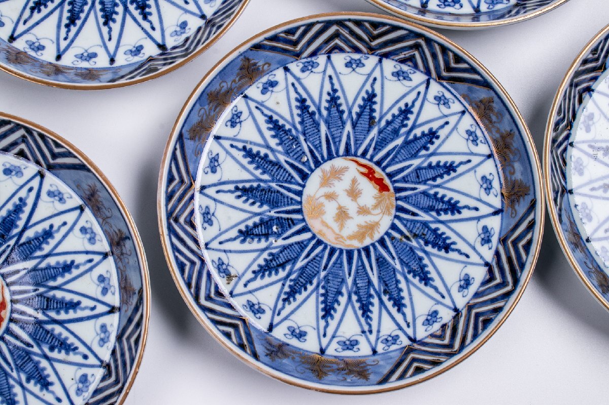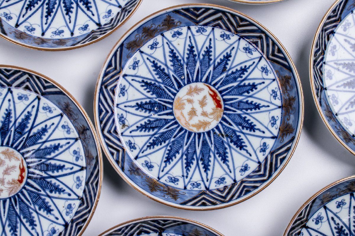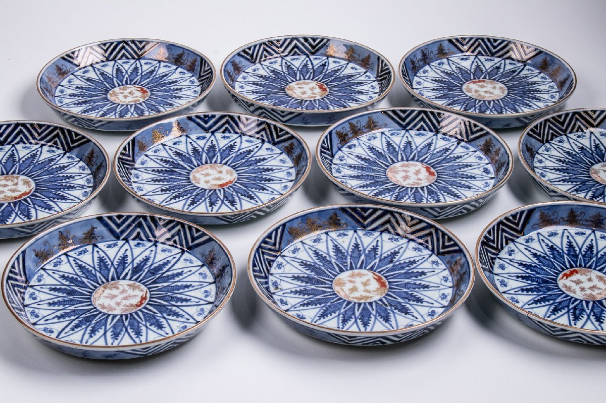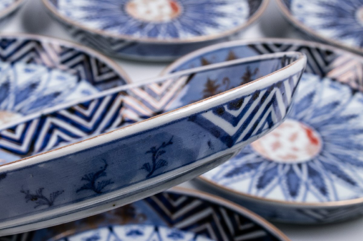 【うつわ】 古伊万里 染錦宝相華文六寸皿 5客 明治時代 E2003A バラ売り可能です 骨董 古玩 唐物 茶道具 日本料理 料亭 懐石