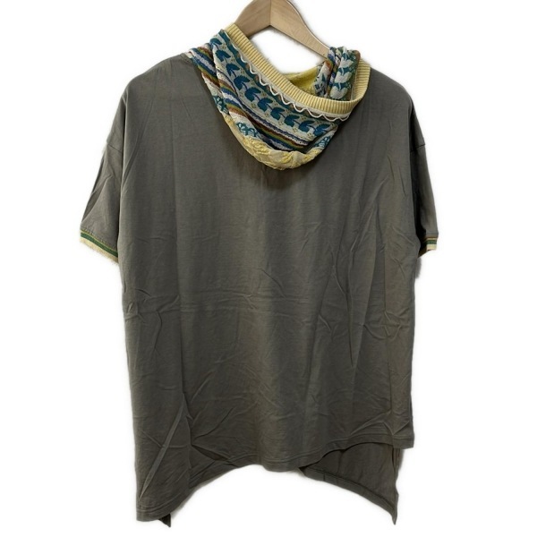 エムアンドキョウコ M.&KYOKO(Masaki&Kyoko) 半袖カットソー サイズF - グレーベージュ×ベージュ×マルチ レディース フード付き トップス