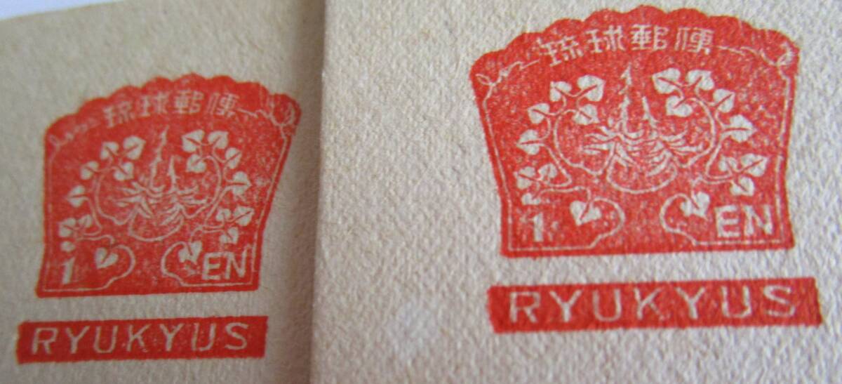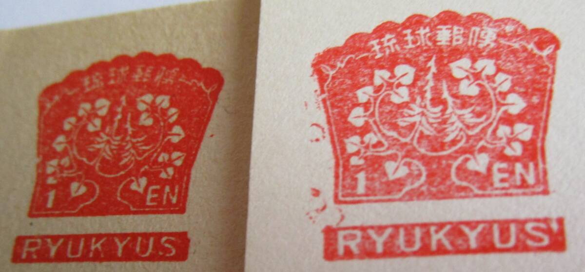 1、大型うす黄褐色粗紙・シェード違い濃朱と朱(画像3参照)。