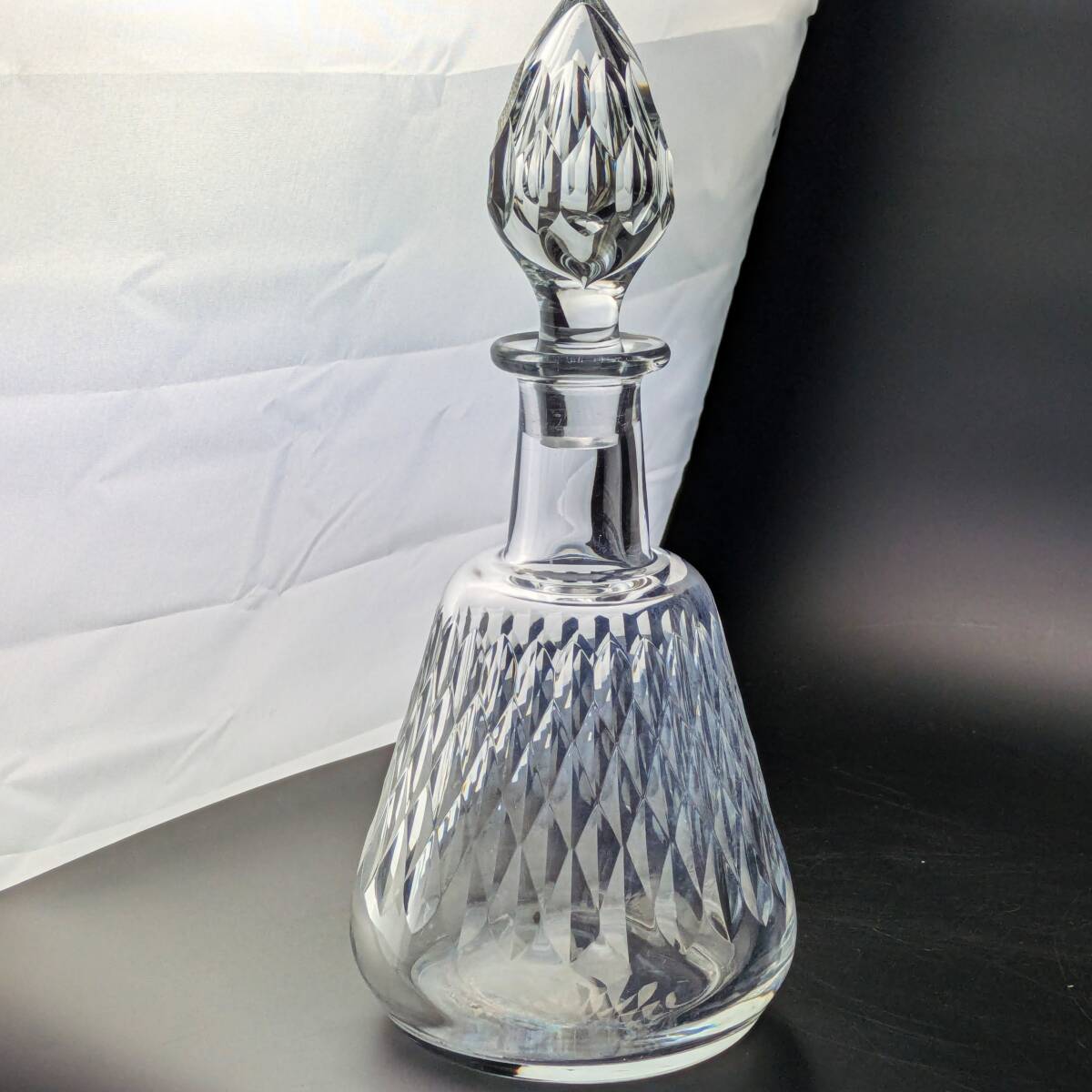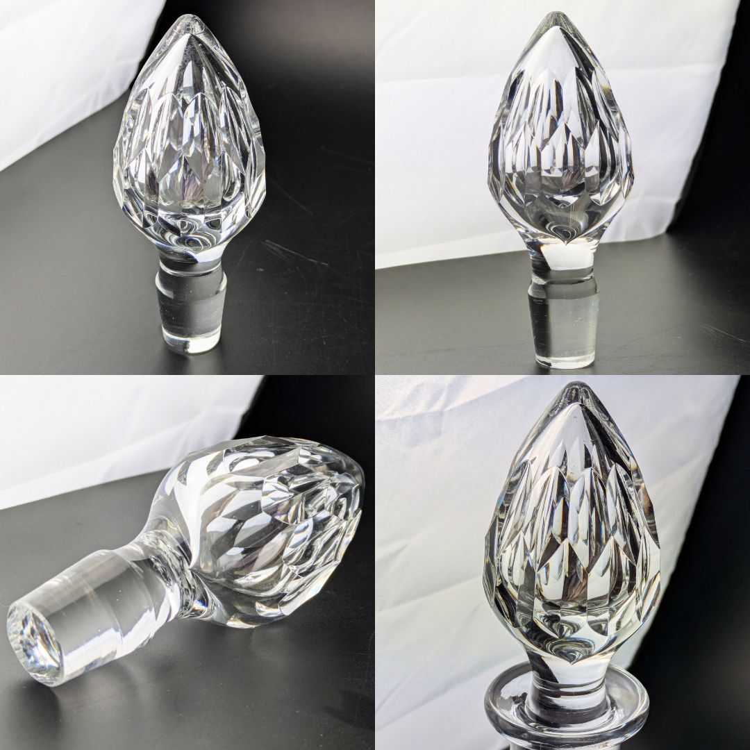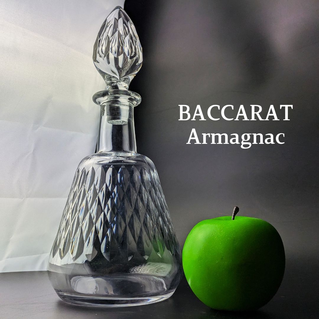 E1261-18 ◆返品承ります 万一お気に召さない場合、評価前なら返品お受けします ご安心してご検討下さい ◆ぜひ ⇒こちら もご覧ください。 価格のご相談などはプロフィール欄ご覧ください。 ◆お品物◆ バカラ baccarat アルマニャック armagnac デキャンタ 高さ 約29㎝ ストッパー含 フランス・バカラ社が1952~1986年に製造した デキャンタ アルマニャックです 大柄で均整の取れたシルエットと、 胴部を覆う深いダイヤモンドカットが 光を鋭く屈折させ、ウイスキーやブランデーを 注ぐたびに卓上が華やぎます。 底部にはエッチングロゴが御座います。 重量は約1.5kgと安定感があり、丁寧に吹き上げられた 24%鉛クリスタルの重厚さが手のひらに伝わります。 ストッパー底面と口縁に針先大のアタリがございますが、 指先で確認できる程度で実用・鑑賞いずれにも影響しません。 水垢や曇りも皆無ではありませんが、クリスタル特有の 澄んだ音色が健在です。 現行ラインでは得られないヴィンテージならではの 厚みと輝きを楽しみたいコレクターや、上質なホームバーを 演出したい方への贈答にも最適です。 しっかりと梱包のうえ迅速発送いたしますので、 どうぞ安心してご検討ください。 | ||