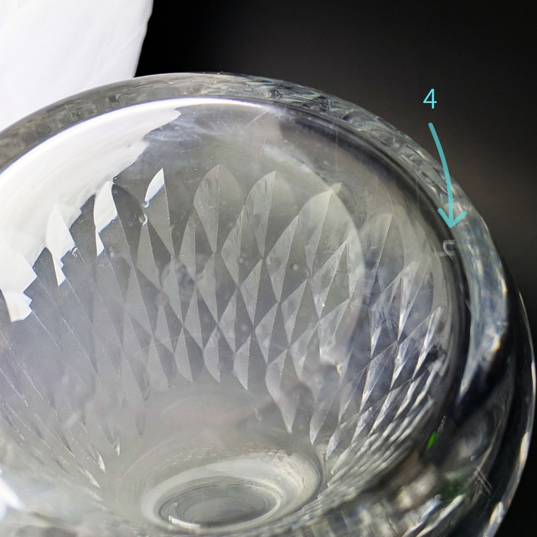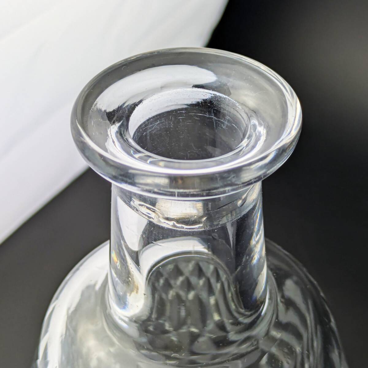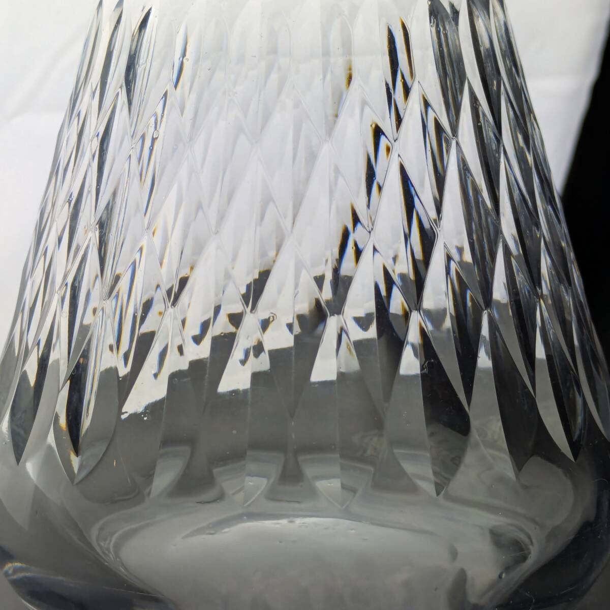 E1261-18 ◆返品承ります 万一お気に召さない場合、評価前なら返品お受けします ご安心してご検討下さい ◆ぜひ ⇒こちら もご覧ください。 価格のご相談などはプロフィール欄ご覧ください。 ◆お品物◆ バカラ baccarat アルマニャック armagnac デキャンタ 高さ 約29㎝ ストッパー含 フランス・バカラ社が1952~1986年に製造した デキャンタ アルマニャックです 大柄で均整の取れたシルエットと、 胴部を覆う深いダイヤモンドカットが 光を鋭く屈折させ、ウイスキーやブランデーを 注ぐたびに卓上が華やぎます。 底部にはエッチングロゴが御座います。 重量は約1.5kgと安定感があり、丁寧に吹き上げられた 24%鉛クリスタルの重厚さが手のひらに伝わります。 ストッパー底面と口縁に針先大のアタリがございますが、 指先で確認できる程度で実用・鑑賞いずれにも影響しません。 水垢や曇りも皆無ではありませんが、クリスタル特有の 澄んだ音色が健在です。 現行ラインでは得られないヴィンテージならではの 厚みと輝きを楽しみたいコレクターや、上質なホームバーを 演出したい方への贈答にも最適です。 しっかりと梱包のうえ迅速発送いたしますので、 どうぞ安心してご検討ください。 | ||