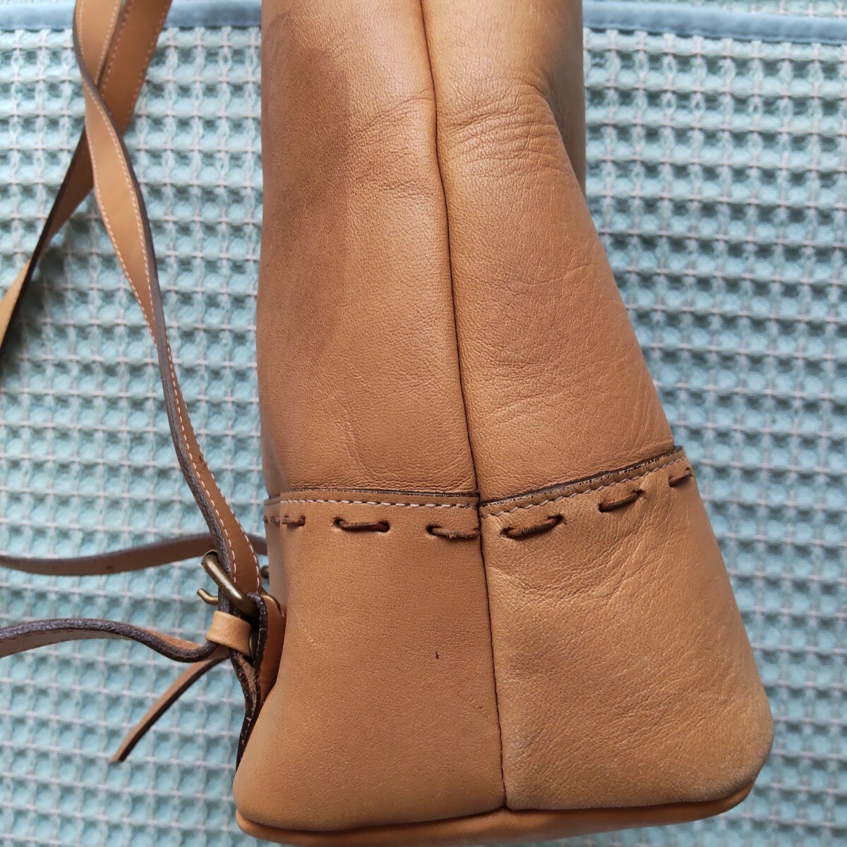 大きさは横幅20cm、マチ12cm、深さ25cmです。