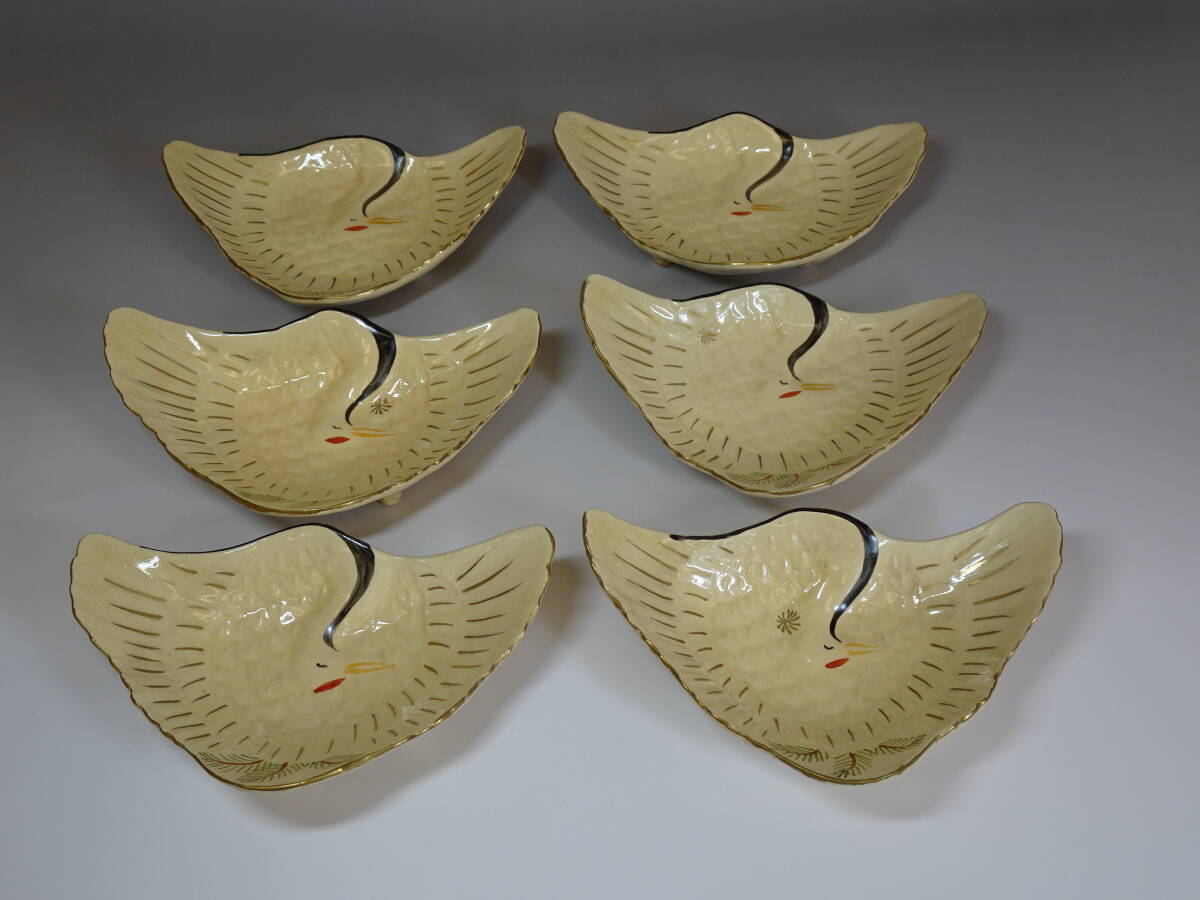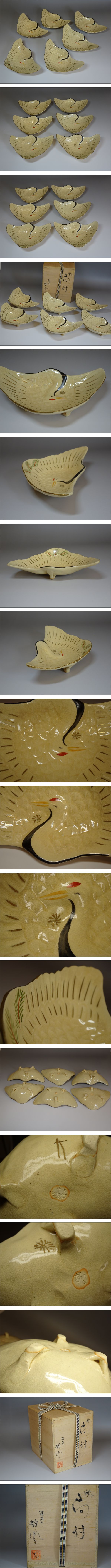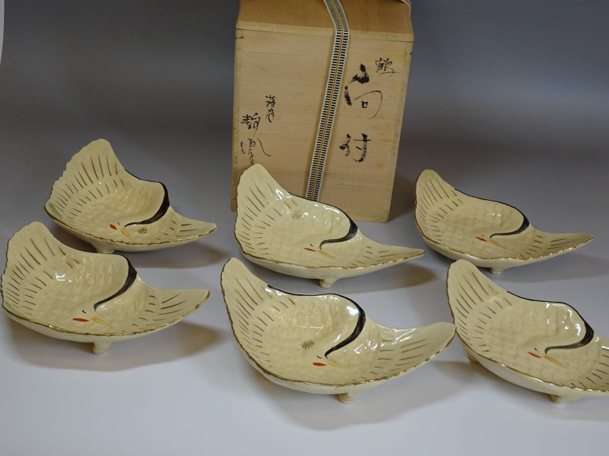 【涼風庵】薩摩焼 中野静鳳 作 色絵金彩鶴向付6客 共箱 食器/和食器/向付/小鉢/銘々皿/割烹/懐石 | |||