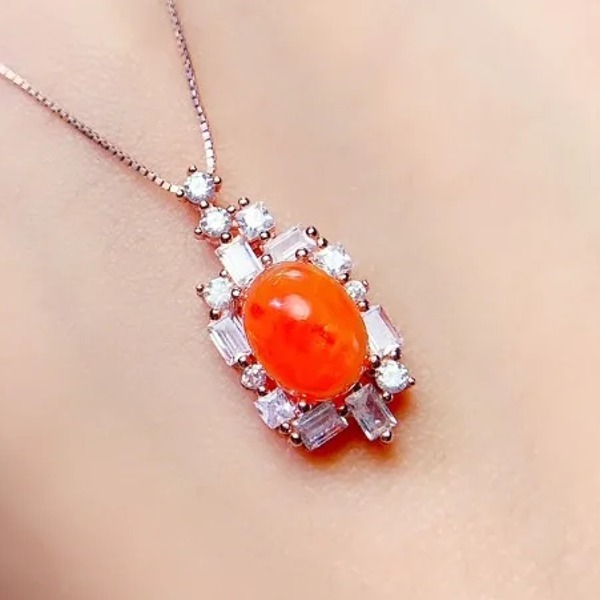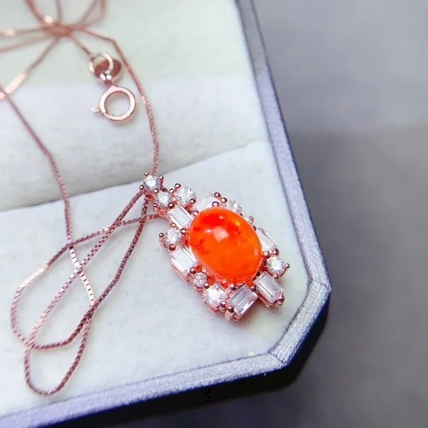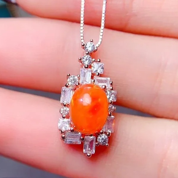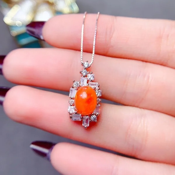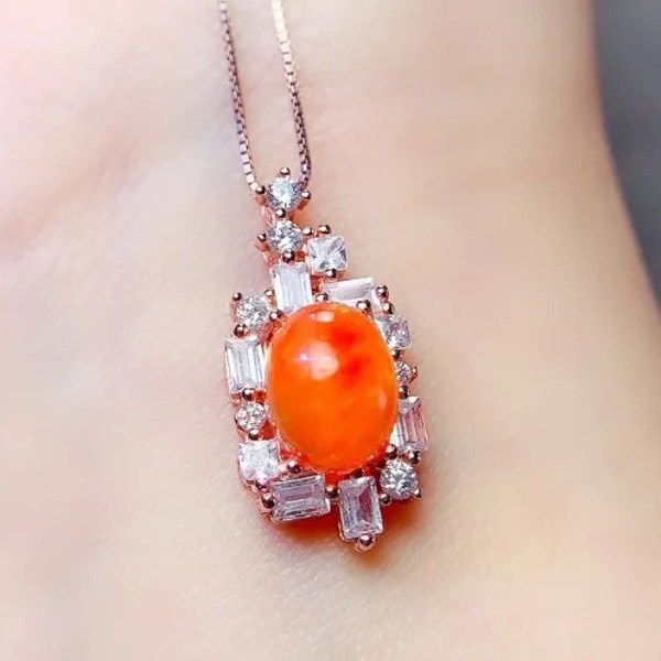 天然オレンジオパールのペンダントネックレス、7mm * 9mm、日常着用のシンプルな宝石、925シルバーリング