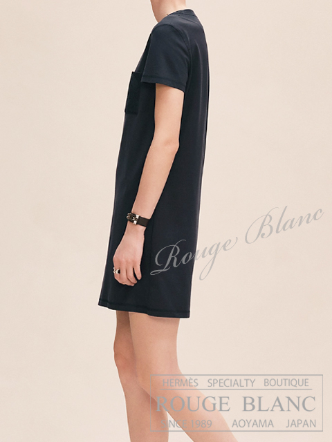 新品 エルメス 国内定価113,300円 2025 A/W ドレス 刺しゅう入りポケット ワンピース ブルーノワール #38 タグ付 HERMES ネイビー