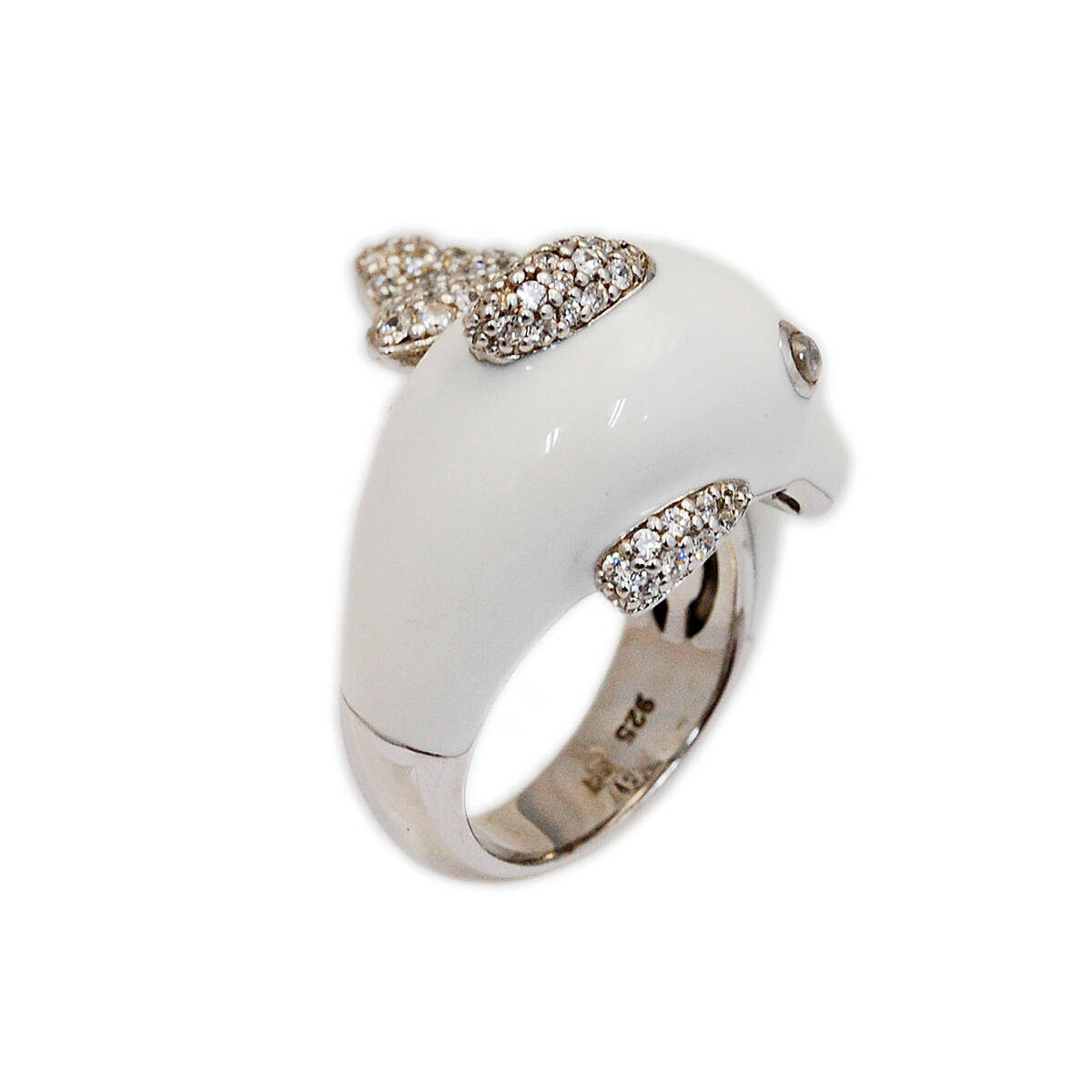 15号 ドルフィンホワイトエナメルジルコニア925シルバーリング GF-19888WT