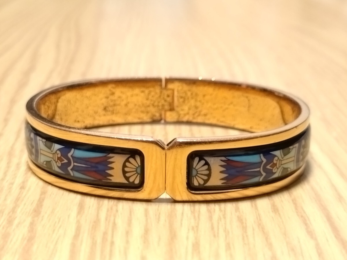 エルメスのアクセサリー製作期のクリップ式ゴールドブレスレット。(エナメル塗布から留め具の仕様まで踏襲されたモデルです。)