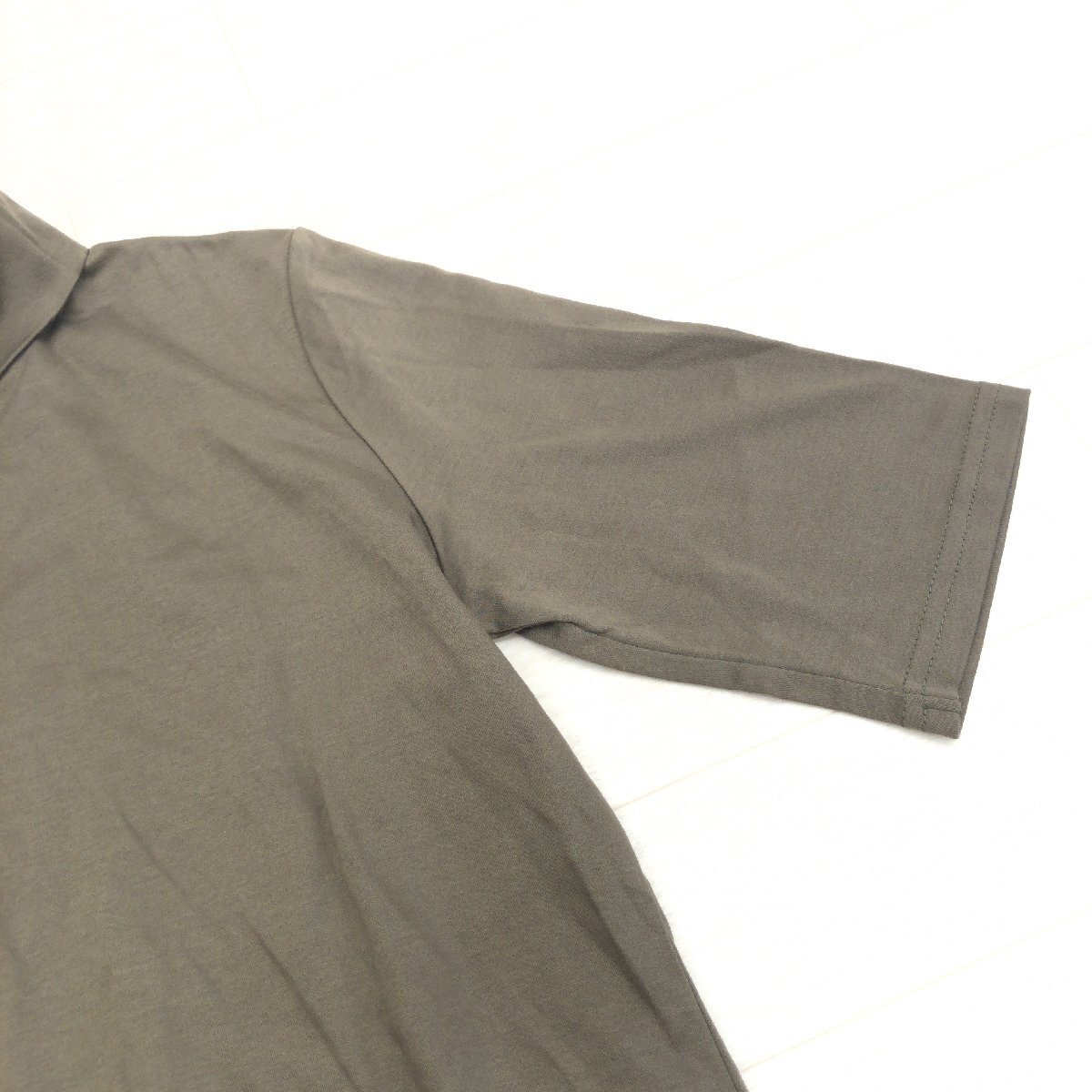 美品 NIGAI ナイガイ コットン100% タートルネック ショートスリーブ カットソー M カーキ オリーブ 日本製 五分袖 Tシャツ レディース