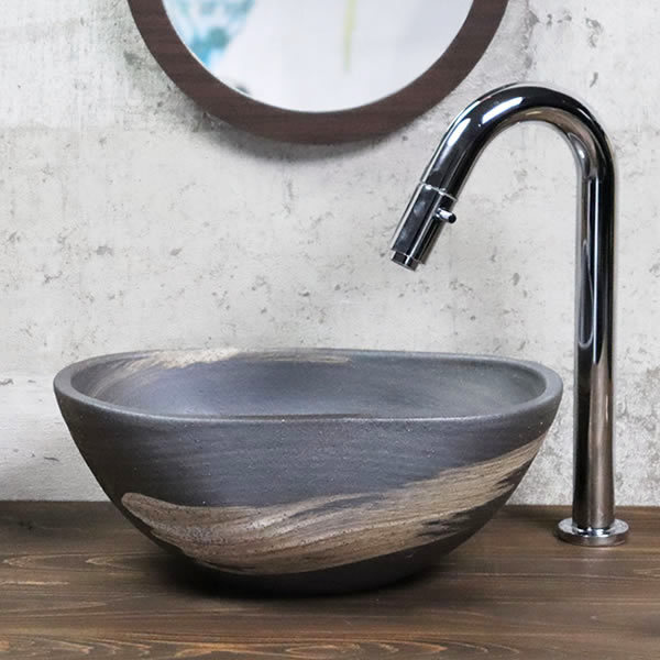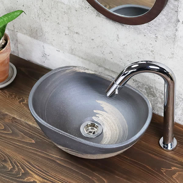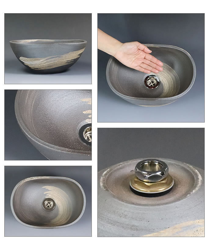 | 商品名 | 信楽焼 楕円型はけ目手洗い鉢(ミニ) |