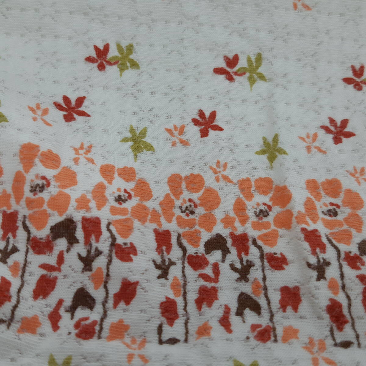 色・素材など 色 白を基調としてオレンジ、ブラウン、ライトグリーンのお花があしらわれています。