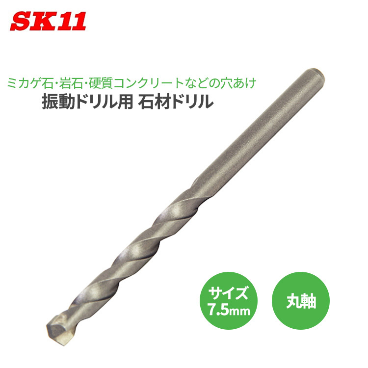 SK11 石材ドリル 7.5mm 丸軸 振動ドリル用 穴あけ 硬質コンクリート 石材 ミカゲ石 硬質瓦 PC板 ドリル