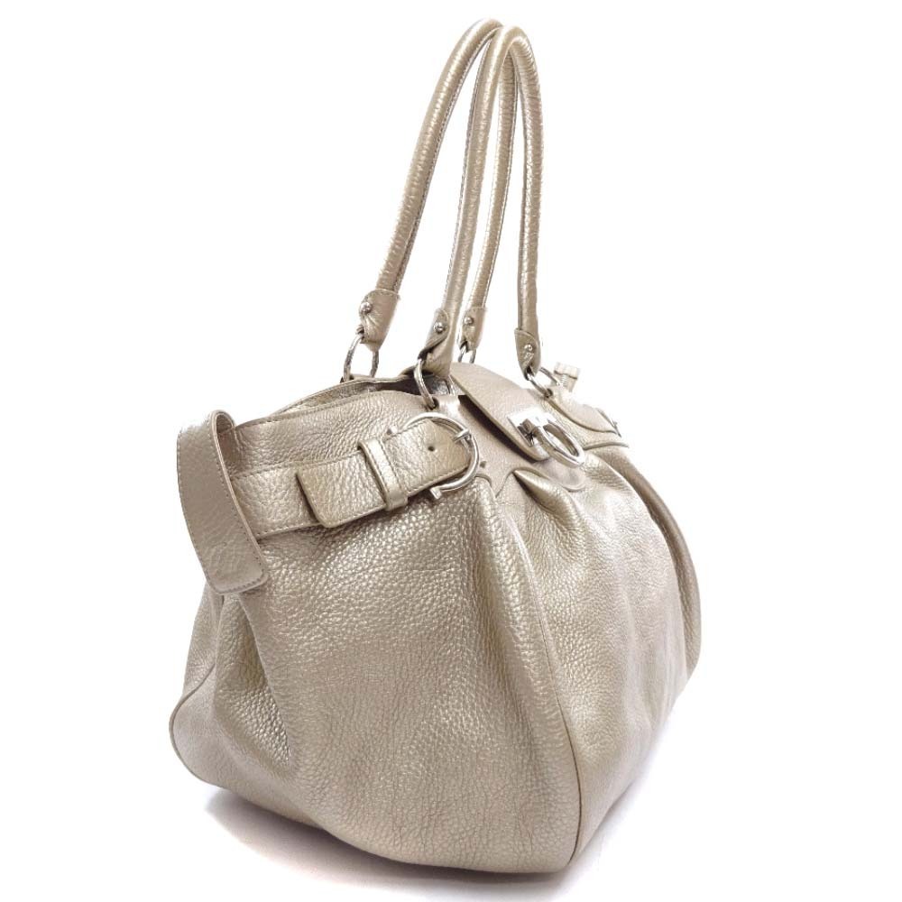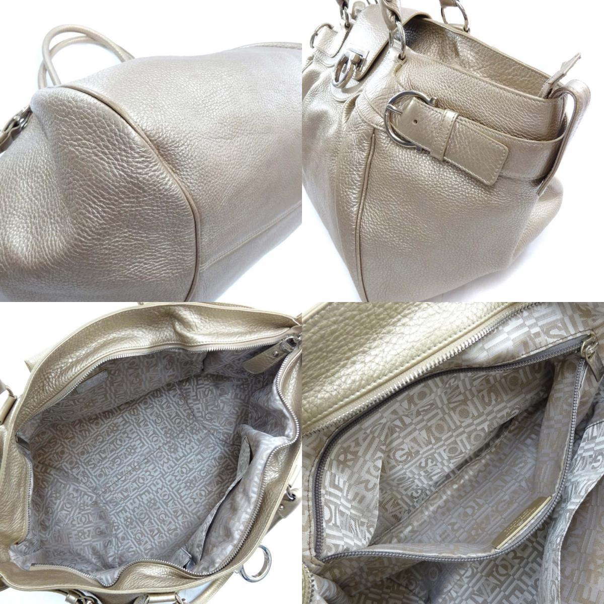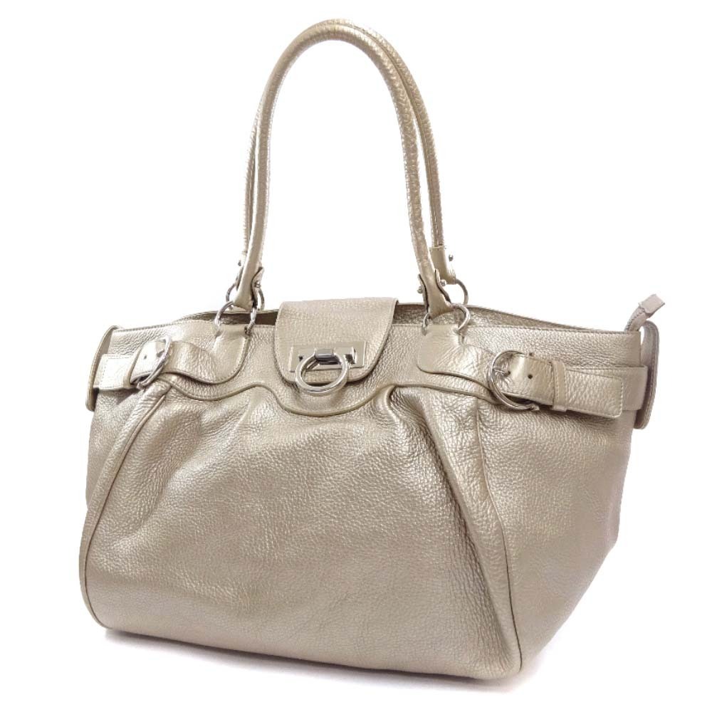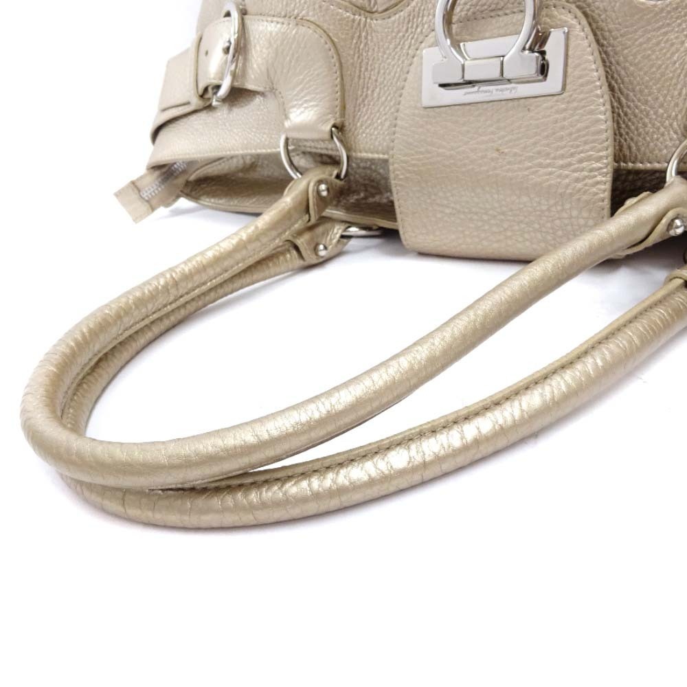 サルヴァトーレフェラガモ ガンチーニ トートバッグ レディース レザー ライトゴールド シルバー金具 AB-21 A049 中古 送料無料 Salvatore Ferragamo
