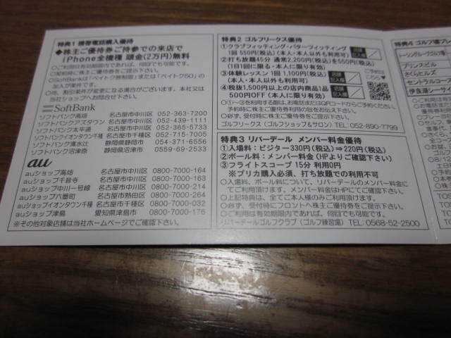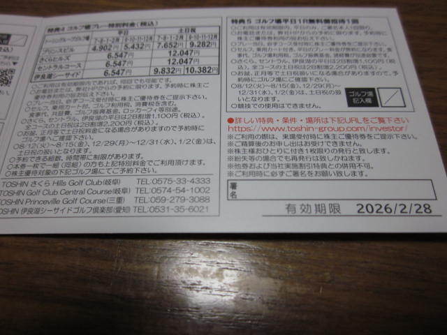 ★トーシン株主優待券2枚 携帯割引/ゴルフ場平日1R無料招待1回
