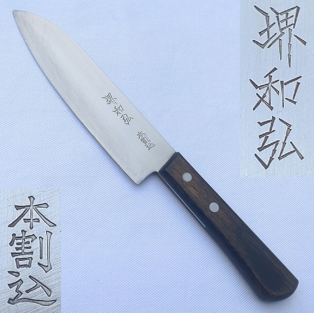 万能包丁 堺和弘 本割込 刃長約158㎜ 峰厚約1.5㎜ 重量約125g 両刃 洋包丁 三徳包丁 調理器具 庖丁 刃物 日本製 【2192】