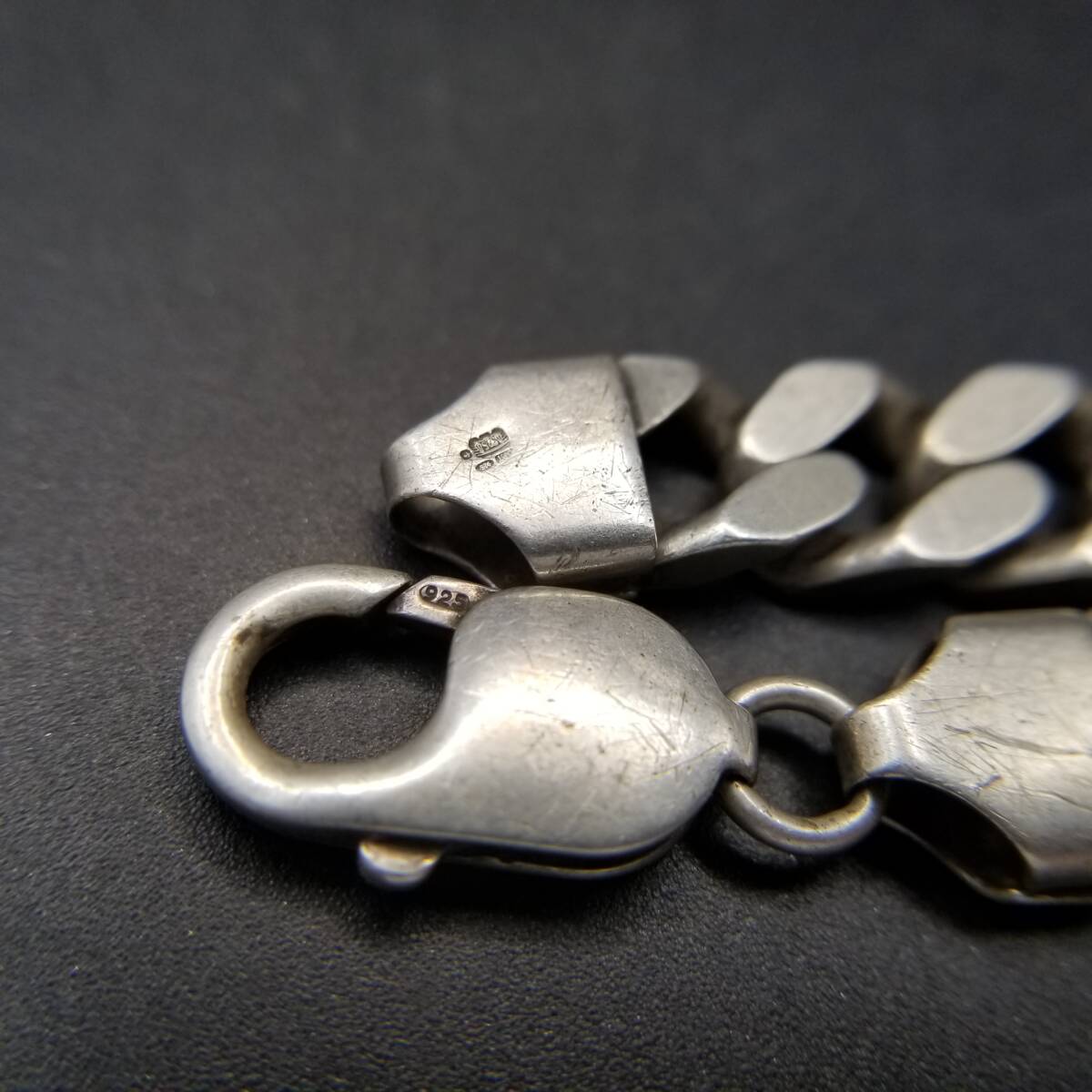 英国 ヴィンテージ チャンキー 喜平チェーン 925 シルバー ブレスレット 重厚感 銀 メンズジュエリー Birmingham Convention マーク Y24-A