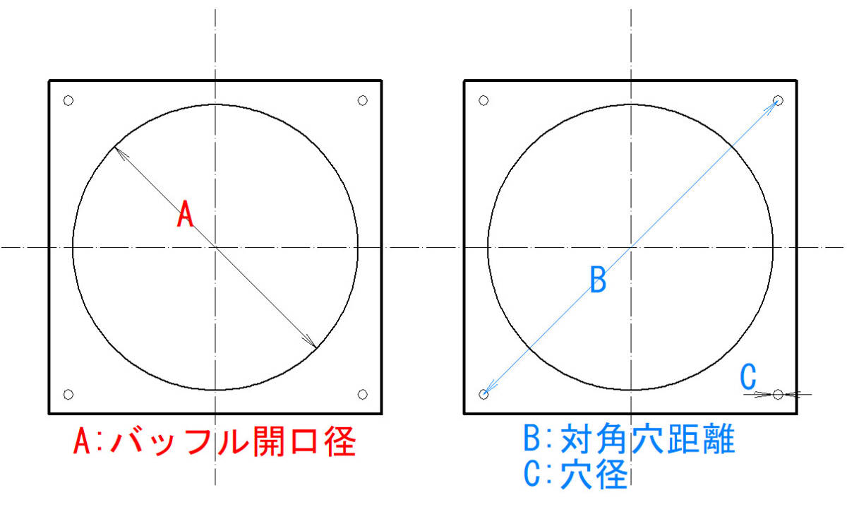 | 1010用9mm厚MDF追加バッフル 対角4つ穴有り(開口径78mmまで指定可)2枚入り | ||||