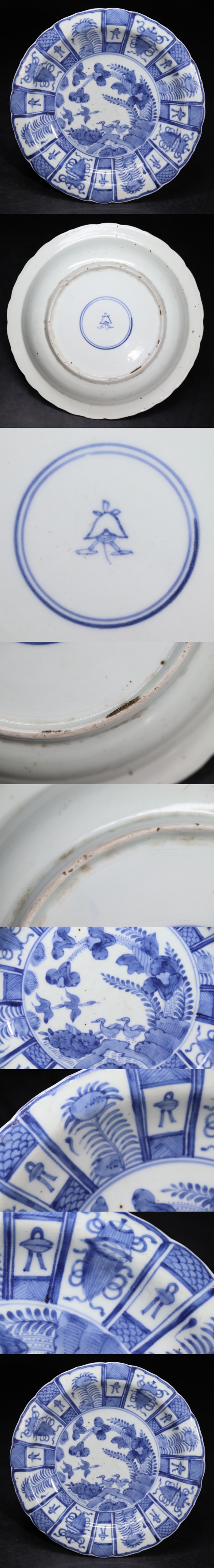 | 時代 底款 染付 風景図 芙蓉手 皿 / 中国美術 茶器 煎茶道具 煎茶飾 検索: 清 新渡 .G2295 |