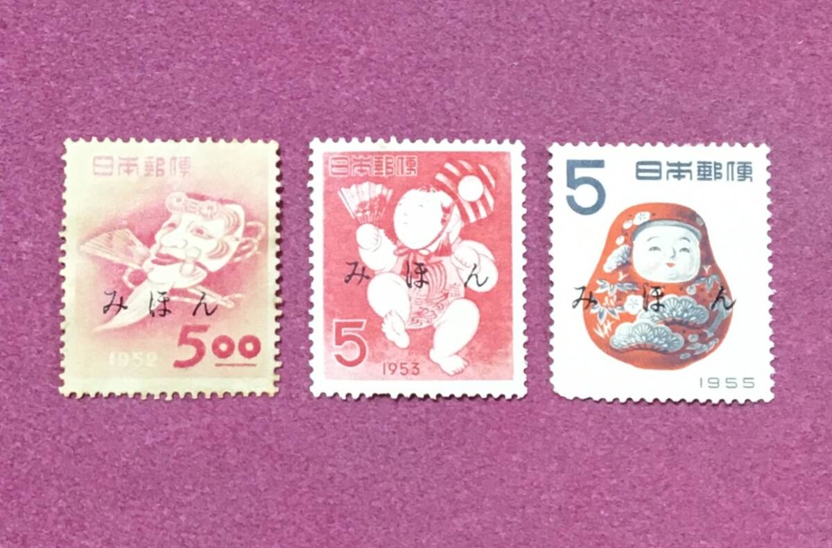 みほん お年玉年賀切手 翁の面 三番叟 起上り 3種 3枚