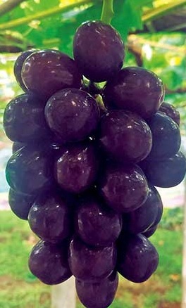 「シャインマスカット」と「ジーコ」を交配した皮ごと食べられる紫黒色の品種。