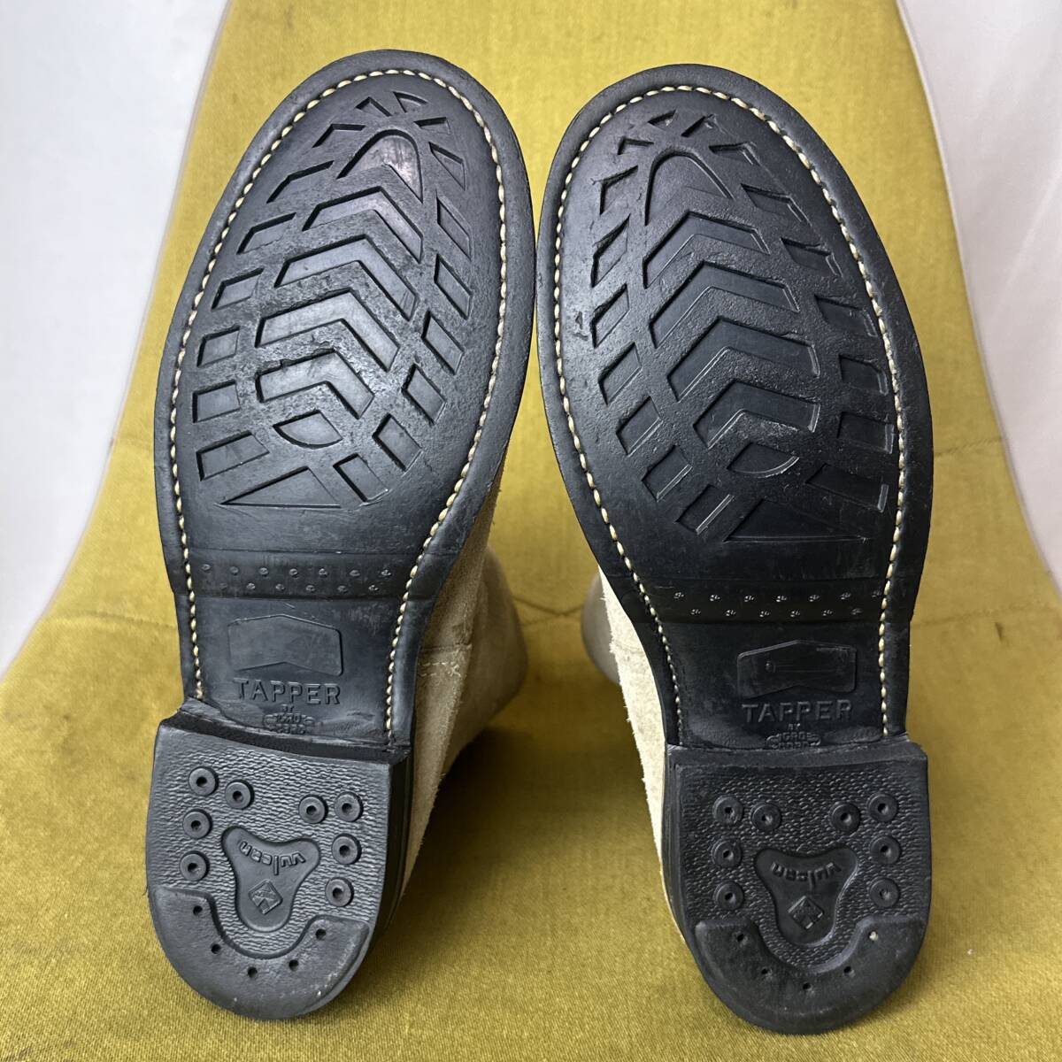 | 少し使用感があり、細かなスレ・傷・汚れがあります、しっかり手入れしてあり履くことが出来ます。 ブランド表記がなく、正確に年代は判別が難しいですが、TAPPERソール・vulcanヒールの組み合わせは、60sのブーツとして販売されているエンジニアについていることの多いパーツとなります。 先芯はありますが、スチールや硬質なものではなく、柔らかなものになります。 | ||||||