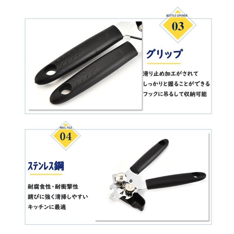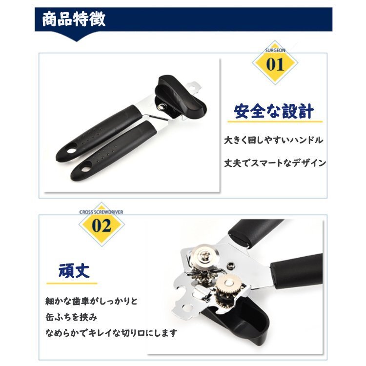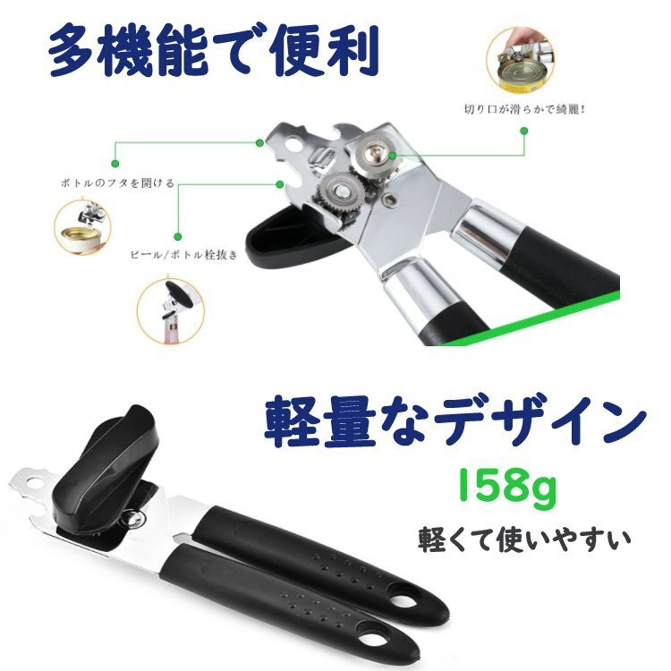 ◆缶切り歯車式 回転式 切り口がなめらか ステンレス鋼 耐腐食性 耐衝撃性 頑丈 缶詰 ビール瓶 栓抜き 吊り穴付き 多機能 ピクニック フェスティバル アウトドア SACAOP3IN1