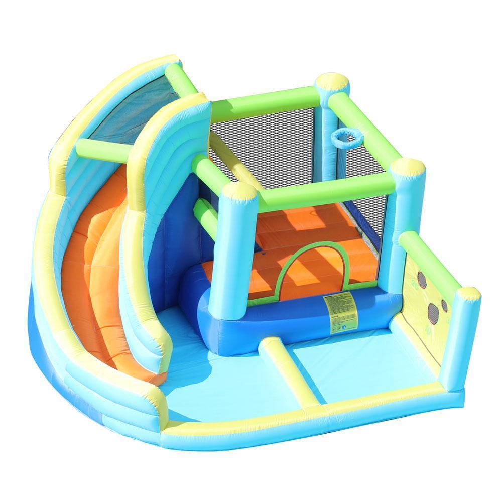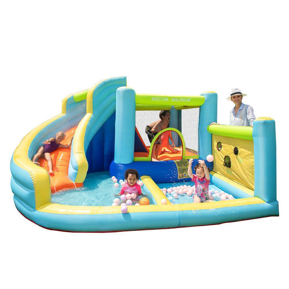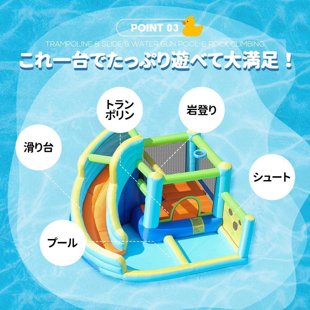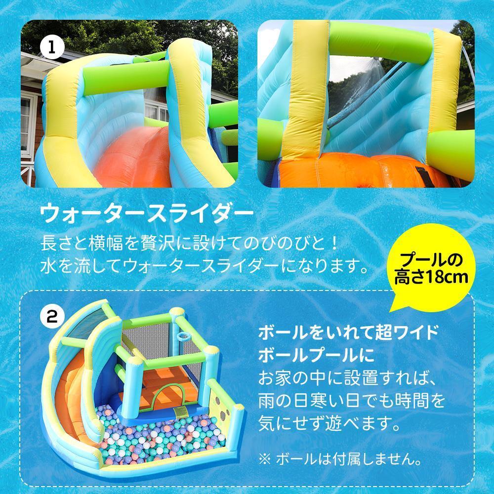【これ一台でたっぷり遊べて大満足】①ウォータースライダー 長さと横幅を贅沢に設けてのびのびと!水を流してウォータースライダーになります。 ②広い浅めのプール すべり降りた先には広々としたプール。 プールに慣れていない子でも安心です。 ボールをいれて超ワイドボールプールに お家の中に設置すれば、雨の日寒い日でも時間を気にせず遊べます。 ※ ボールは付属しません。 ③シュート 友達と一緒に遊ぼう! ④ふかふかのトランポリンゾーン ジャンプしたり、寝っ転がったり、秘密基地にしても楽しめます! ⑤手足を使ってよじ登るステップ 足をズボッといれて登るステップ。腕や足の筋肉をたっぷり使うことができます。 アスレチックのようで達成感も ⑥落下防止ネット付で安心して遊べる 落下防止ネットがついているのでパパ・ママも安心