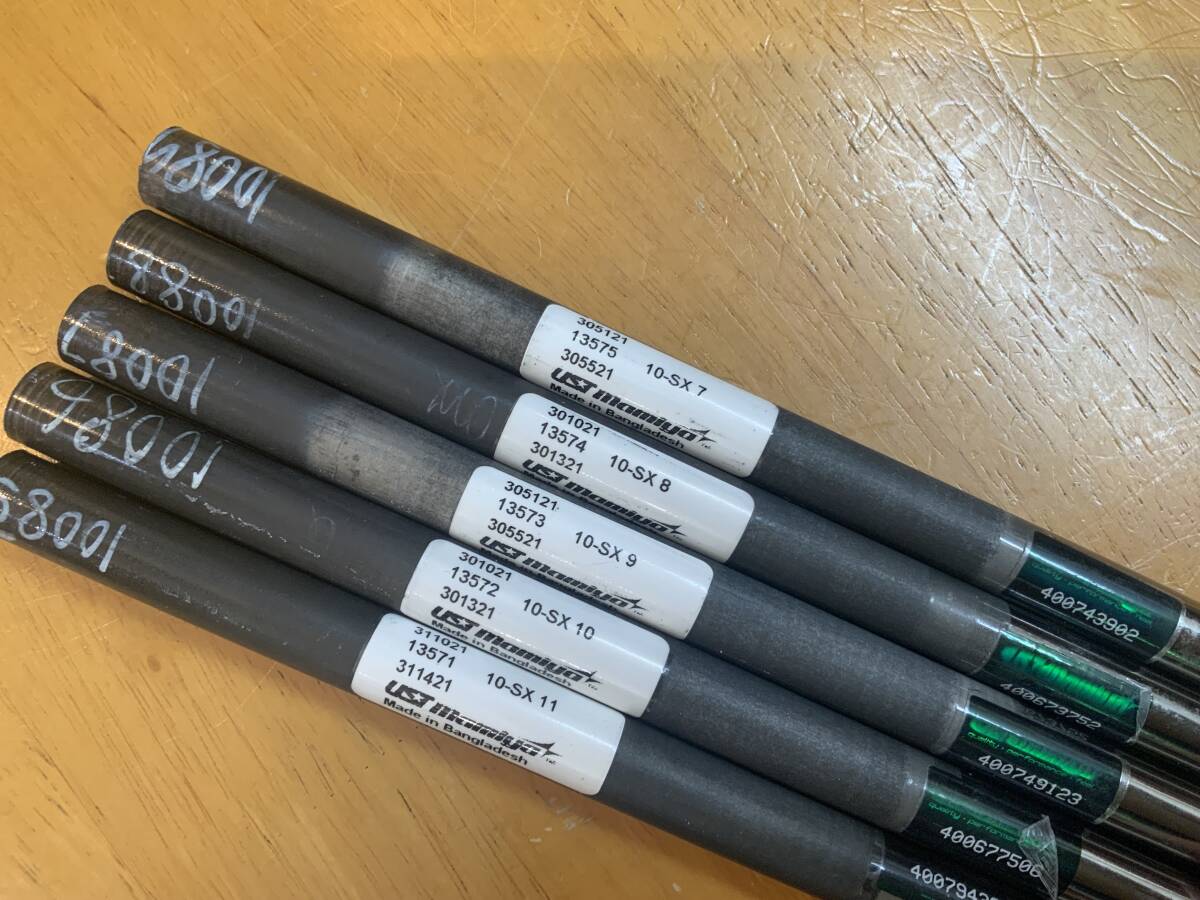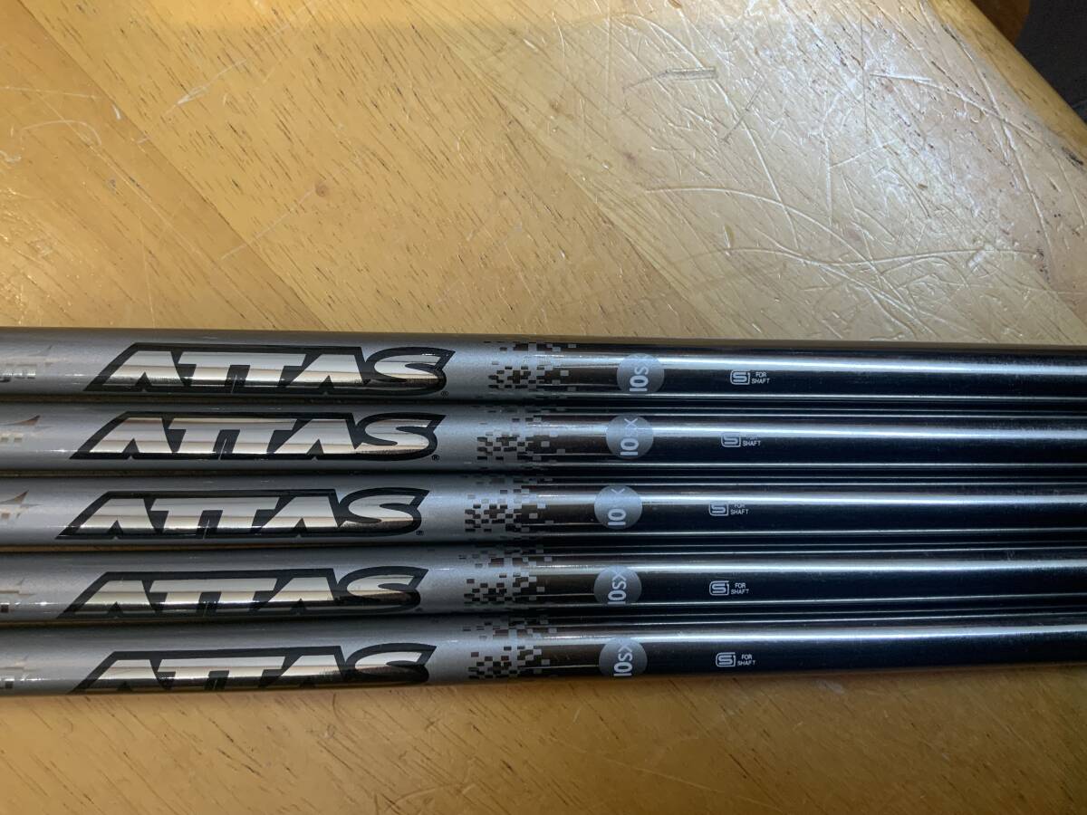 中古ゴルフショップで購入したダンロップのアイアン6からPWから抜いたUST MAMIYAのアイアン用カーボンのATTAS 10のSXの中古品です。 7番から11番の5本組です。