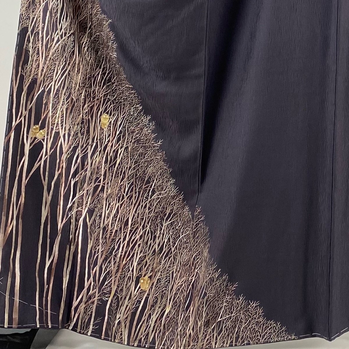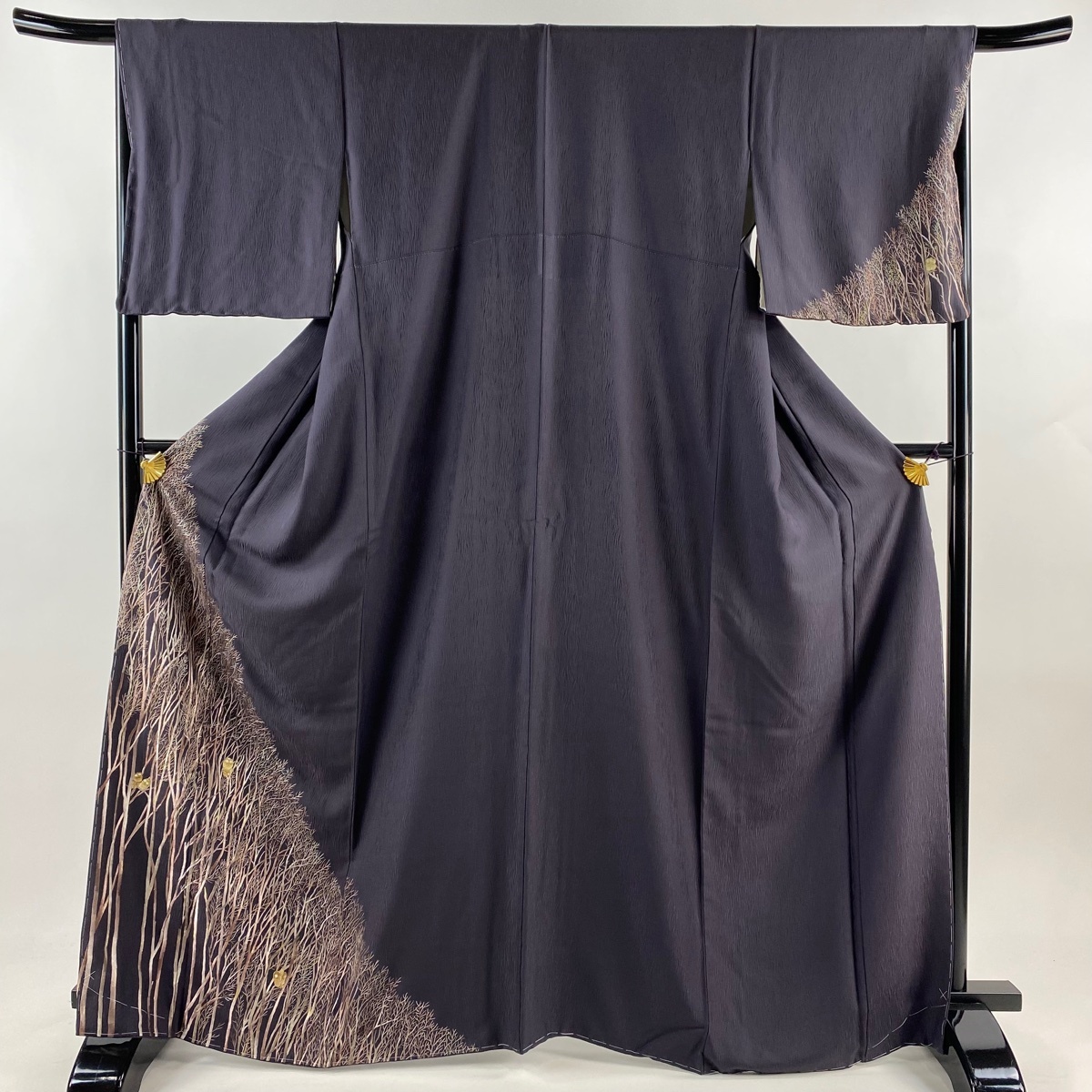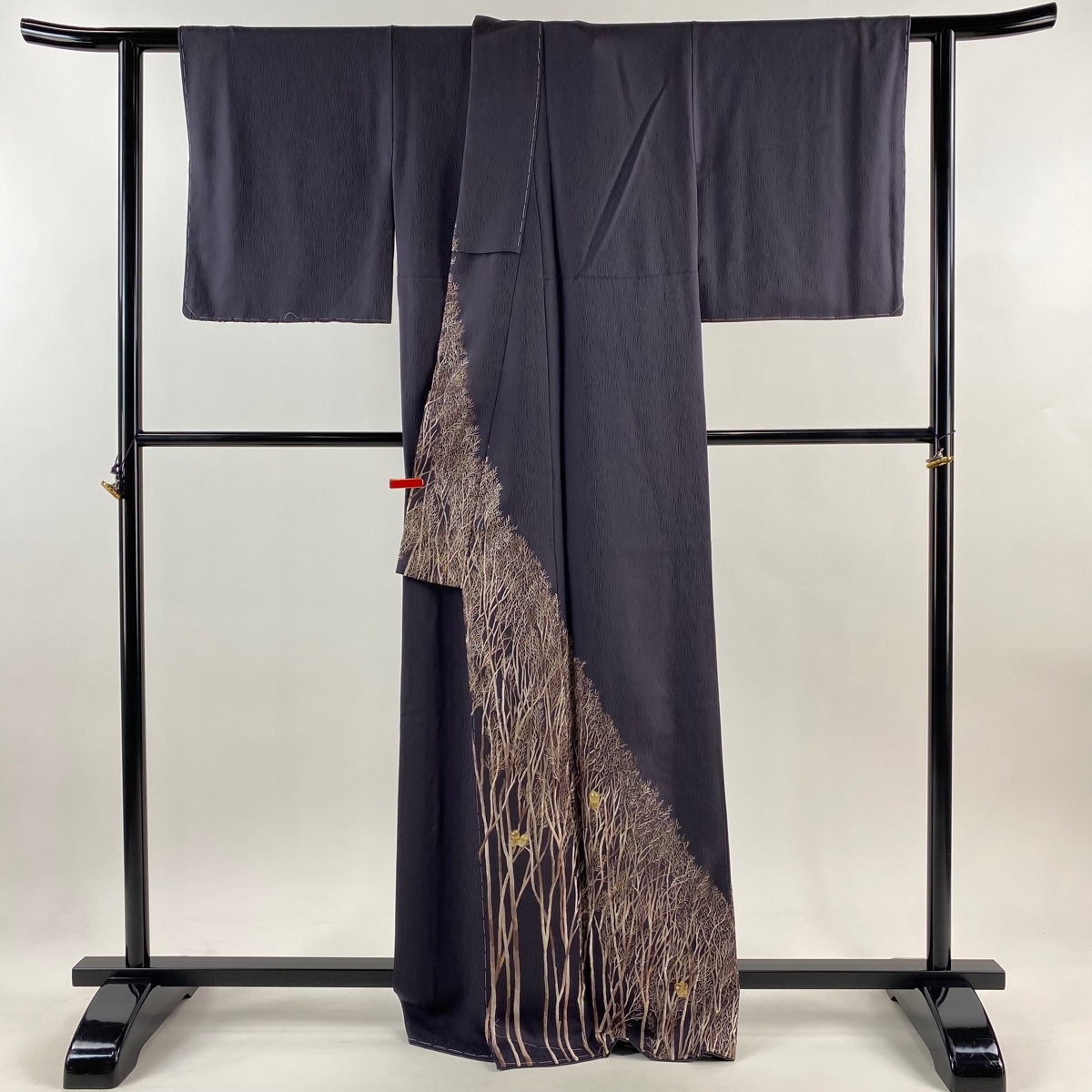 | 付下げ 逸品 ますいわ屋 ふくろう 樹木 刺繍 金銀糸 濃紫 袷 身丈165 裄丈69 L 正絹 【中古】 |