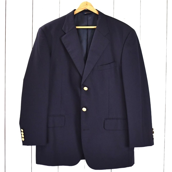 3つボタンシングル。金ボタン。フラップポケット。サイドベンツ。袖口4つボタン。開き見せ。背抜き。ネーム刺繍なし。この機会に是非!