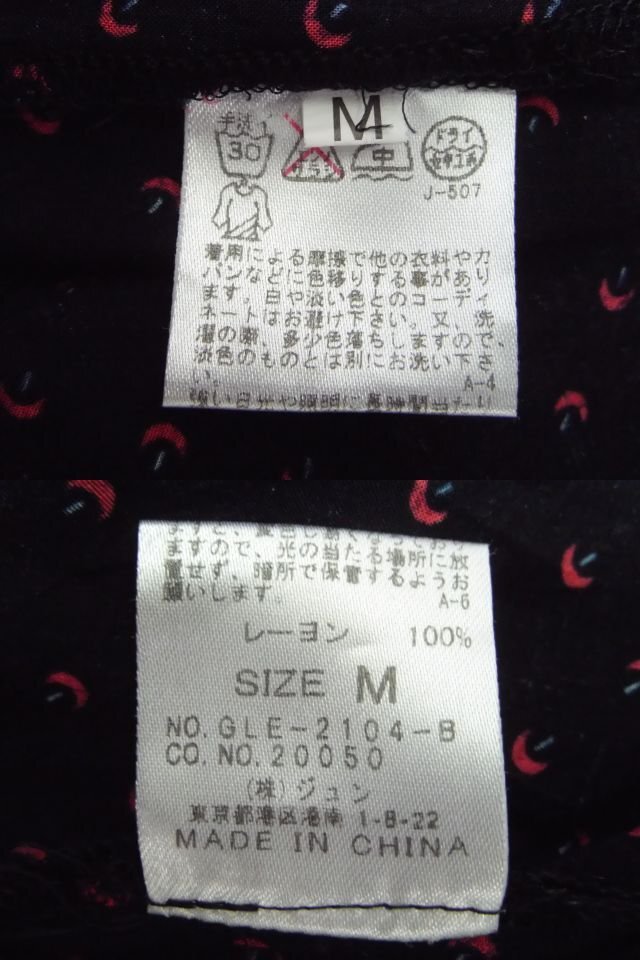 gaminerie★ギャミヌリィ/総柄/チュニック/ロング丈ブラウス/ブラック/黒/Mサイズ【中古】K250701TK-05