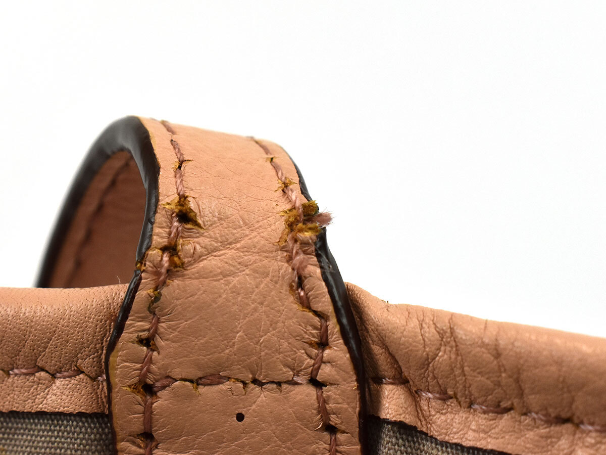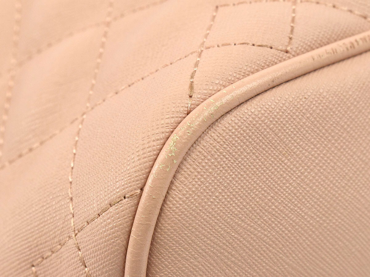 | 全体にヨレ・下部に折れグセ、外側角付近にシミ、底面コバに剥がれ、ショルダー付け根コバに小さな裂け・若干の割れ・ヒビ、内側にシワがございますが、いずれもご使用には差し支えなく、まだまだお使いいただける商品です。 | |