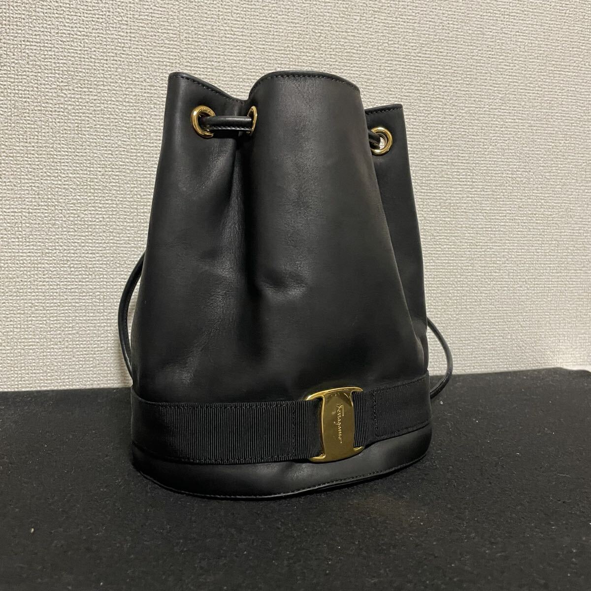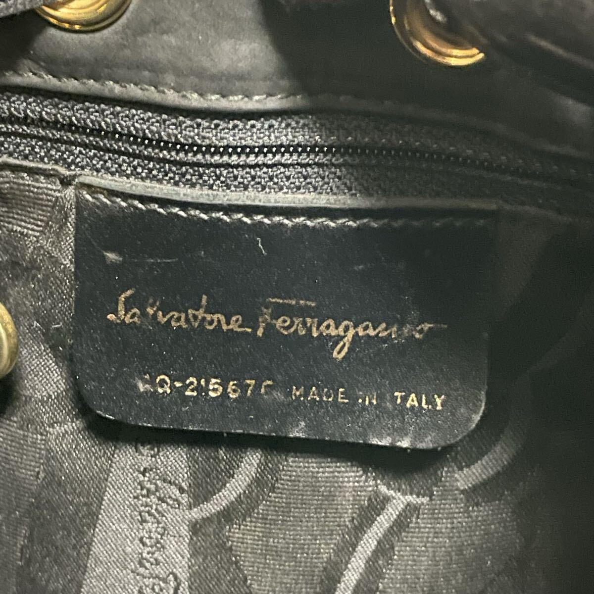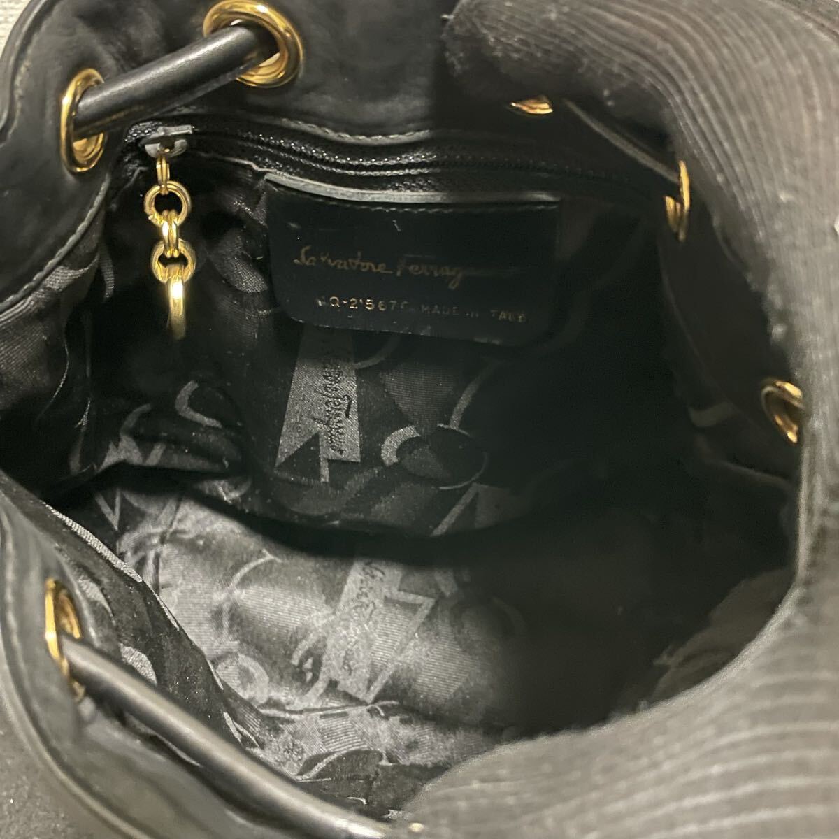 1円スタート! 美品 Salvatore Ferragamo フェラガモ ヴァラリボン レザー 巾着 リュック ブラック 黒 レディース ゴールド金具 ショルダー