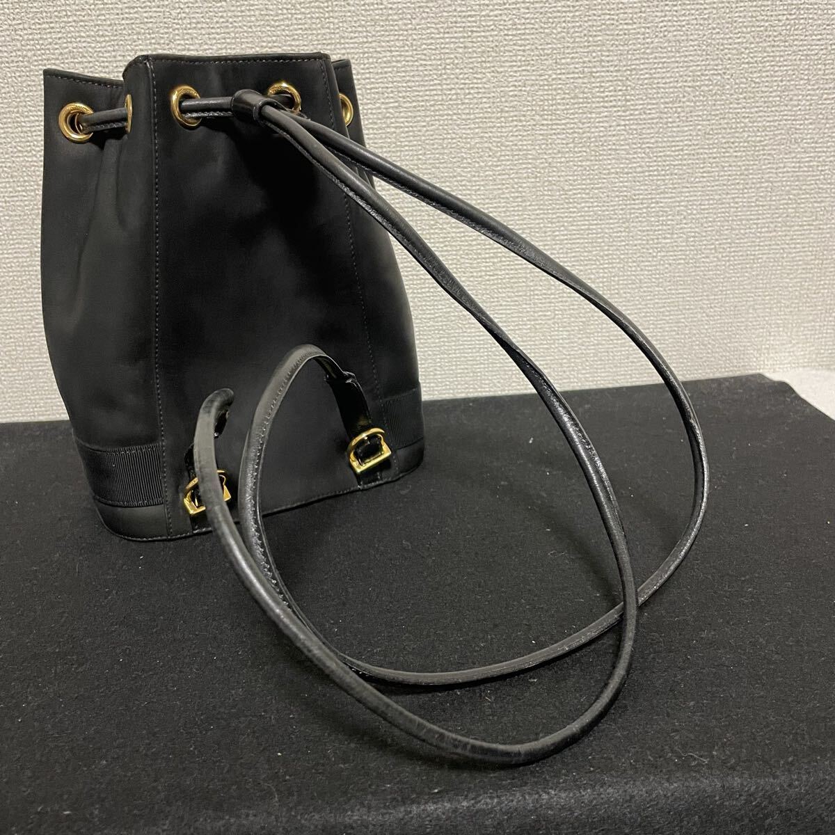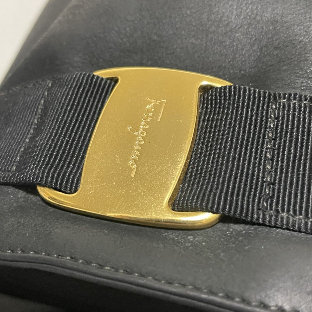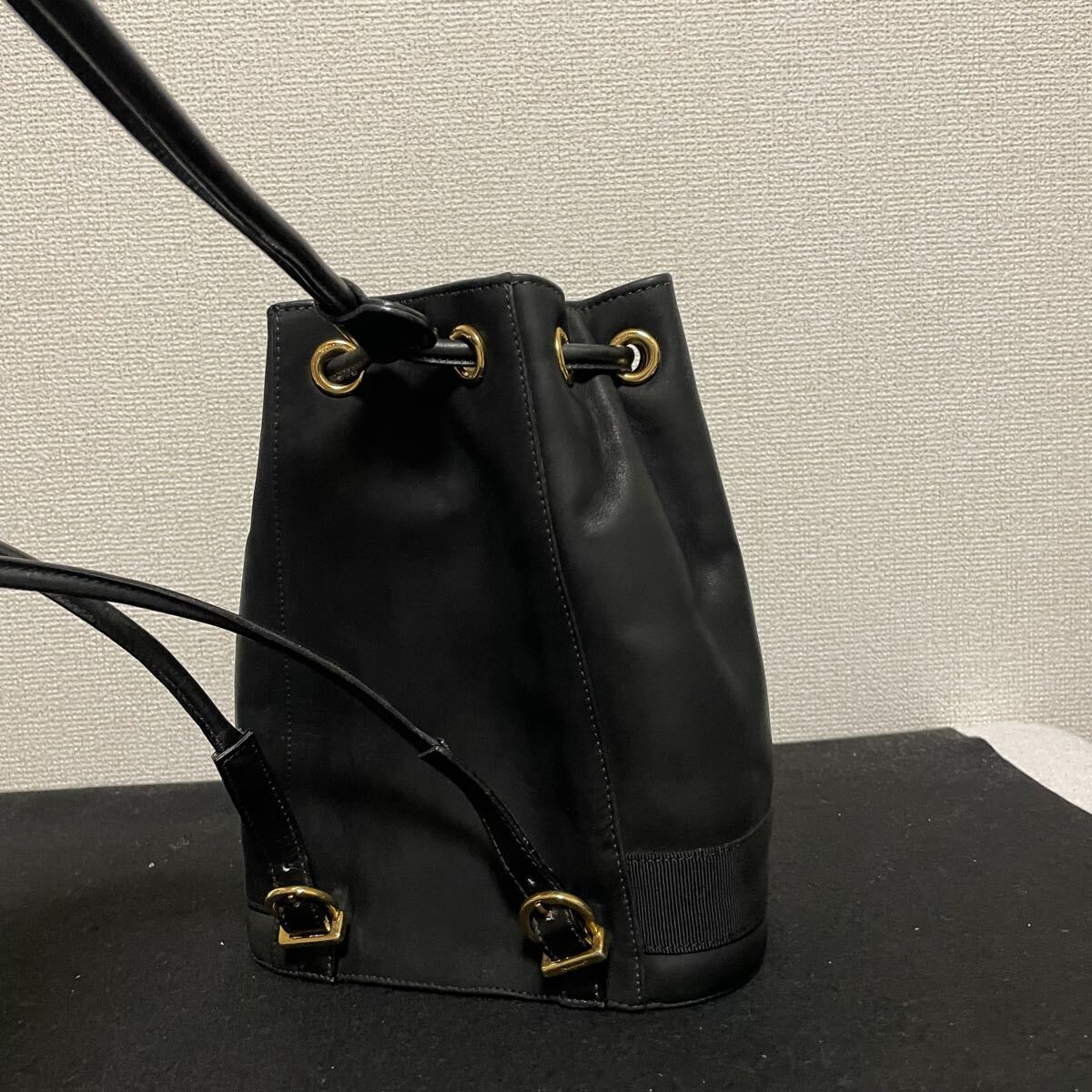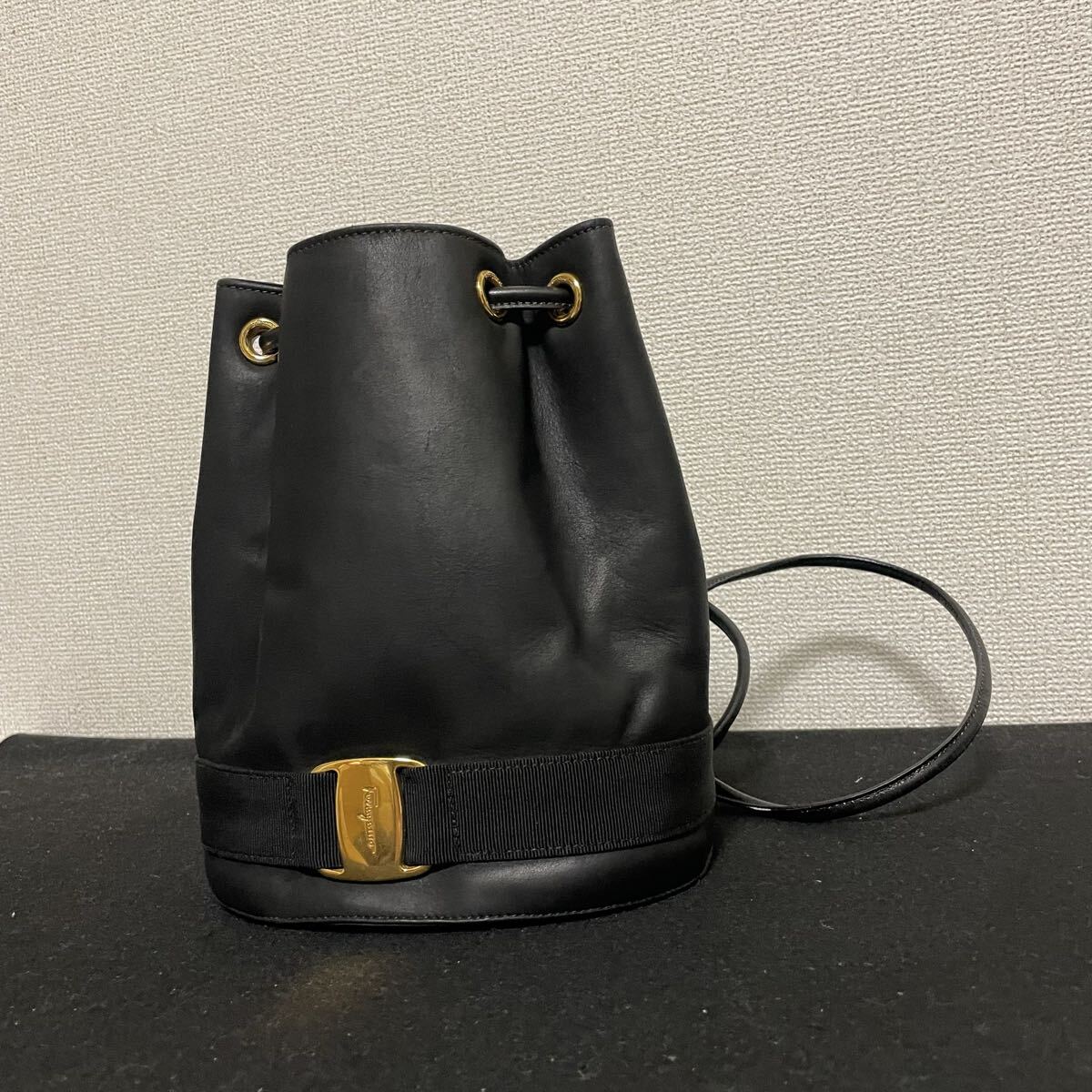 1円スタート! 美品 Salvatore Ferragamo フェラガモ ヴァラリボン レザー 巾着 リュック ブラック 黒 レディース ゴールド金具 ショルダー
