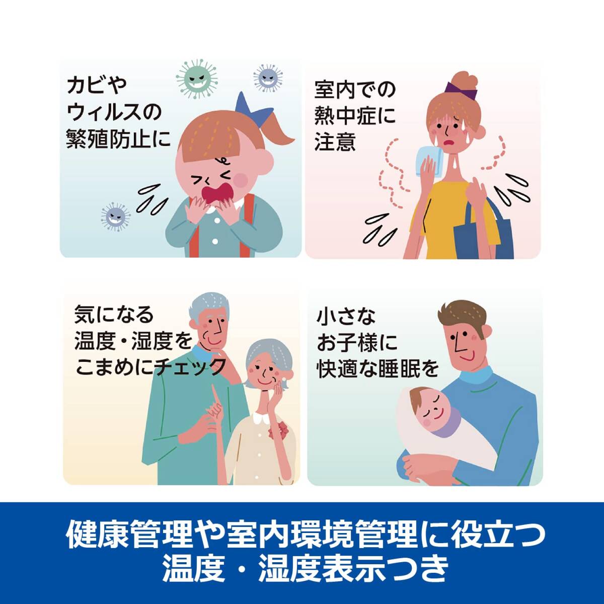温湿度表示(温度測定範囲:0℃~40℃ 測定精度:±2℃ 湿度測定範囲:25%RH~85%RH 測定精度:±8%(25℃))