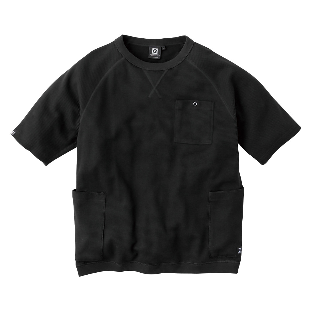 ワッフル生地の点接触でサラサラ触感の5ポケットTシャツ。