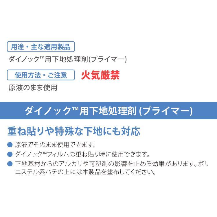 ダイノック フィルムが貼り付きにくい時に、基材に塗布することで、フィルムの接着性を高める液です。特に高い接着性が求められるときにも、お使いください。