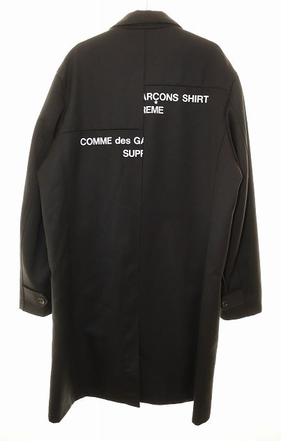 シュプリーム SUPREME COMME des GARCONS SHIRT 18AW WOOL BLEND OVERCOAT BLACK L コムデギャルソン ウール ブレンド スプリットロゴ コート ☆AA★250805