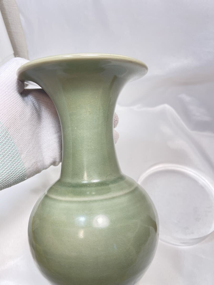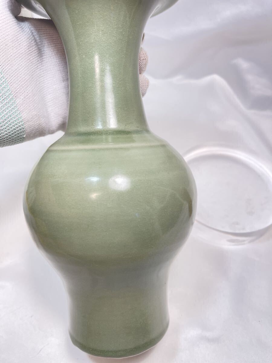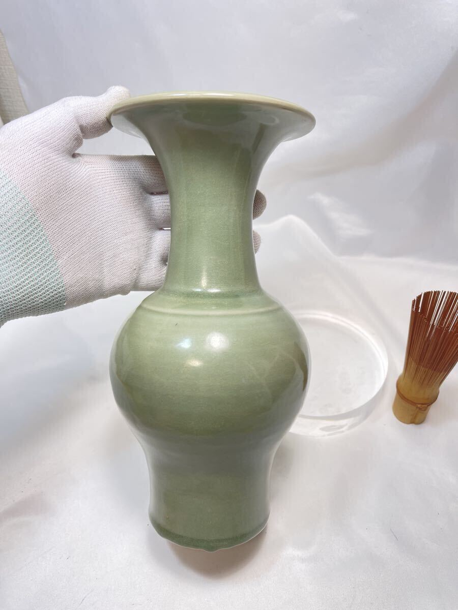 | 【A690】元時期 天龍寺青磁花觚 龍泉 共箱付 花瓶 花入れ 花生 花器 壺 花道具 禮器 文房具 陶瓷器 置物 賞物 飾り 時代物 中国古美術 |